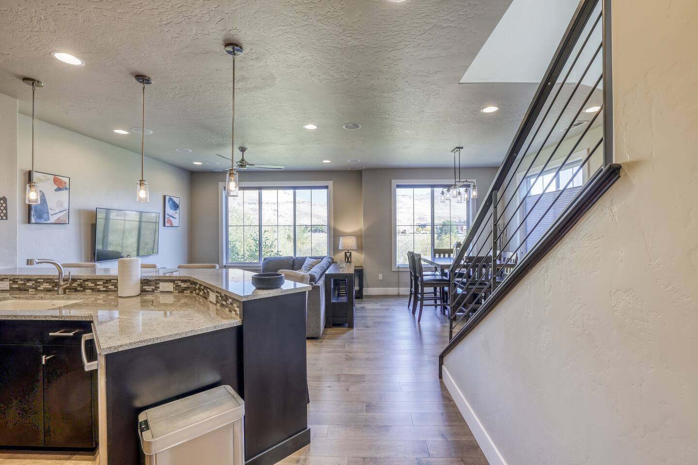 Discover the charm of Boise in our stylish townhome, nestled next to the serene Boise River and Marianne Williams Park. Enjoy exclusive access to a community pool and fitness center. Our clean and practical space is minutes from vibrant Bown Crossing and scenic foothills trails. Perfect for those seeking a blend of tranquility and adventure. Close to BSU, Downtown, and across the street from the Boise River. Book now for an unforgettable stay!
