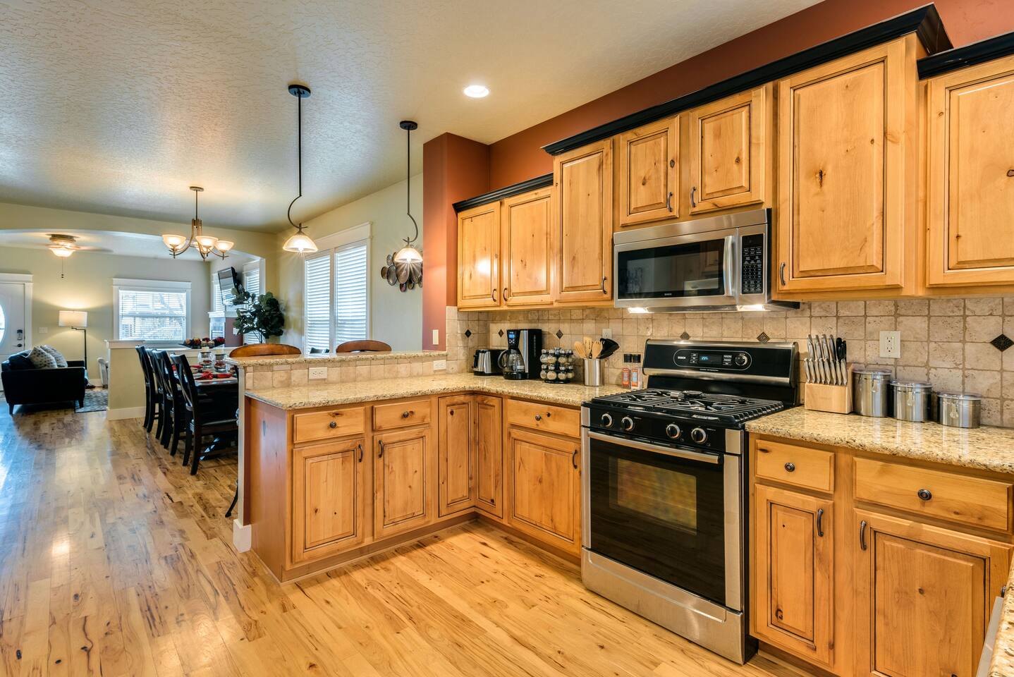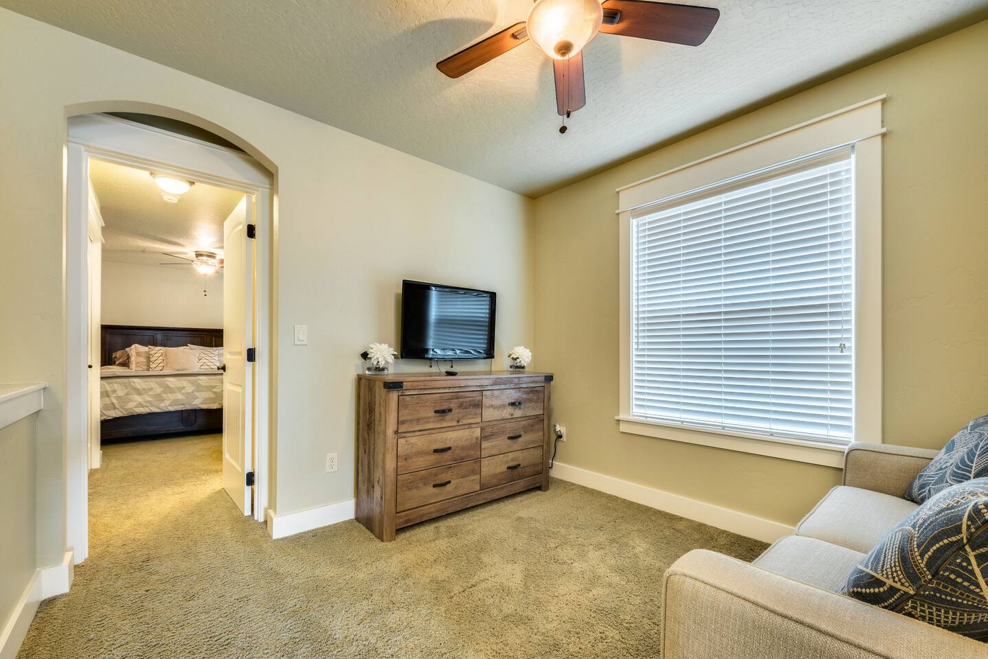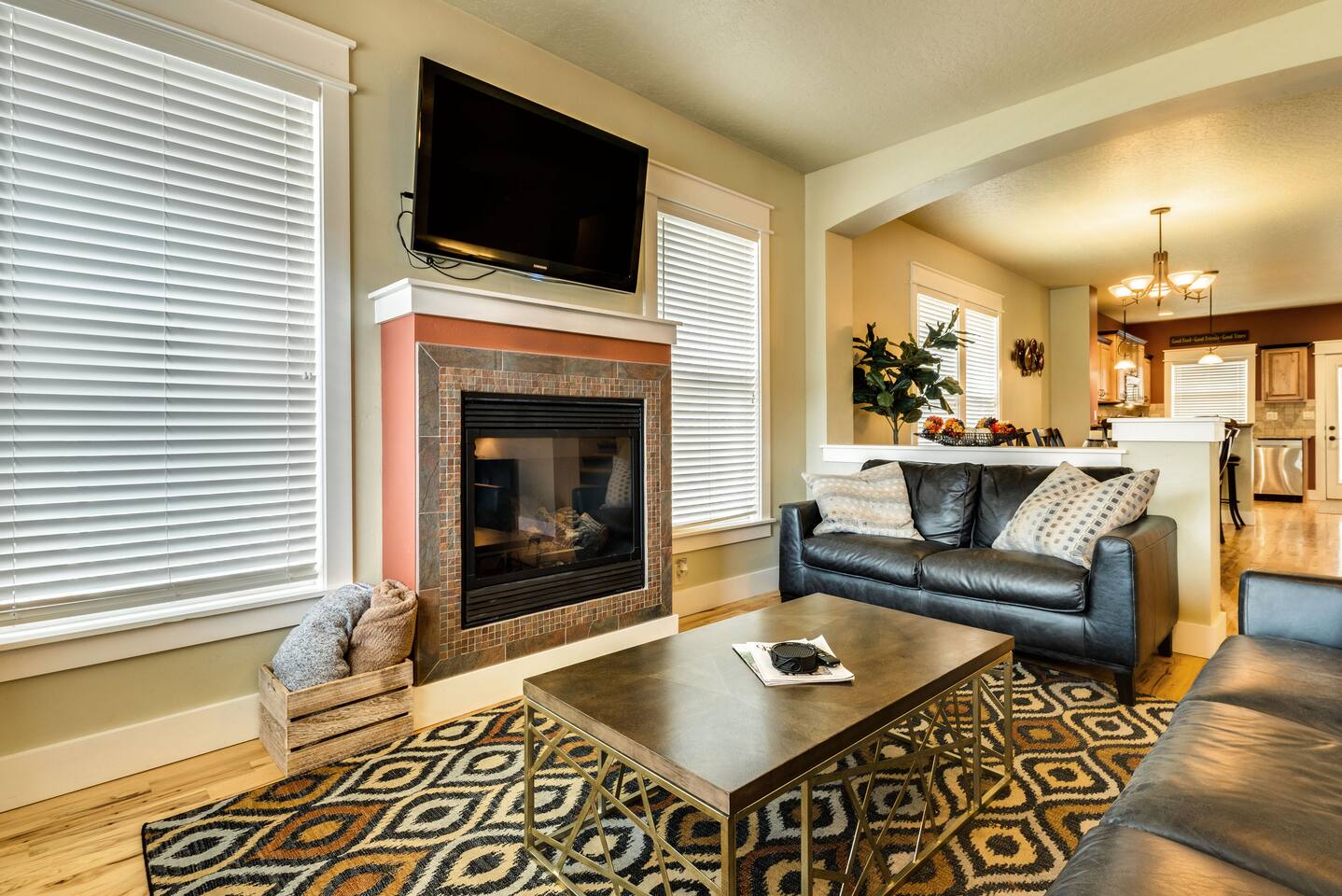 Guests should know that all bedrooms are upstairs. The loft has a full sofa sleeper that can be used after all other beds are taken. The kitchen is fully loaded with cooking supplies and utensils (please don't use metal in the caphalon pots and pans). There's a two car garage that you can use, but we do not issue the code for the keypad for security reasons. You’ll need to open the large garage door by entering the house and then entering the garage. All of the TV’s are smart so you just need to put in your account number for whatever app you want to use. Just be sure to log-out before you leave. We’re ok with dogs, but please declare them prior to booking. There is a $75 charge per trip, per dog. 2 dog maximum. 1 large dog crate is provided. The Boise River Green Belt is a quick walk away and you'll have plenty of dining within walking or riding distance. Coffee is provided for you coffee lovers!