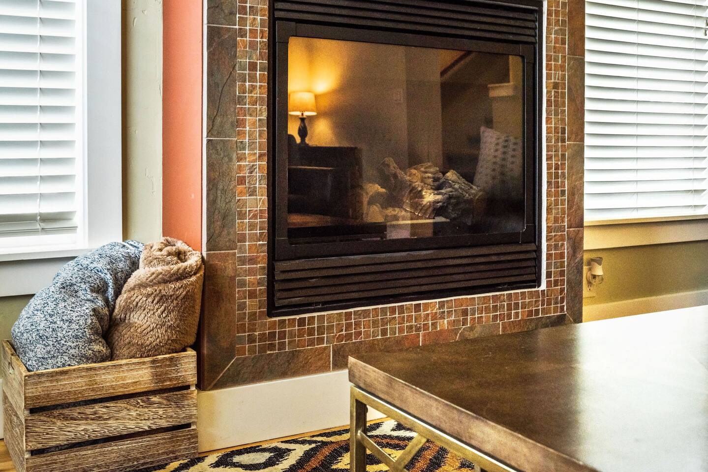 - Indoor fireplace