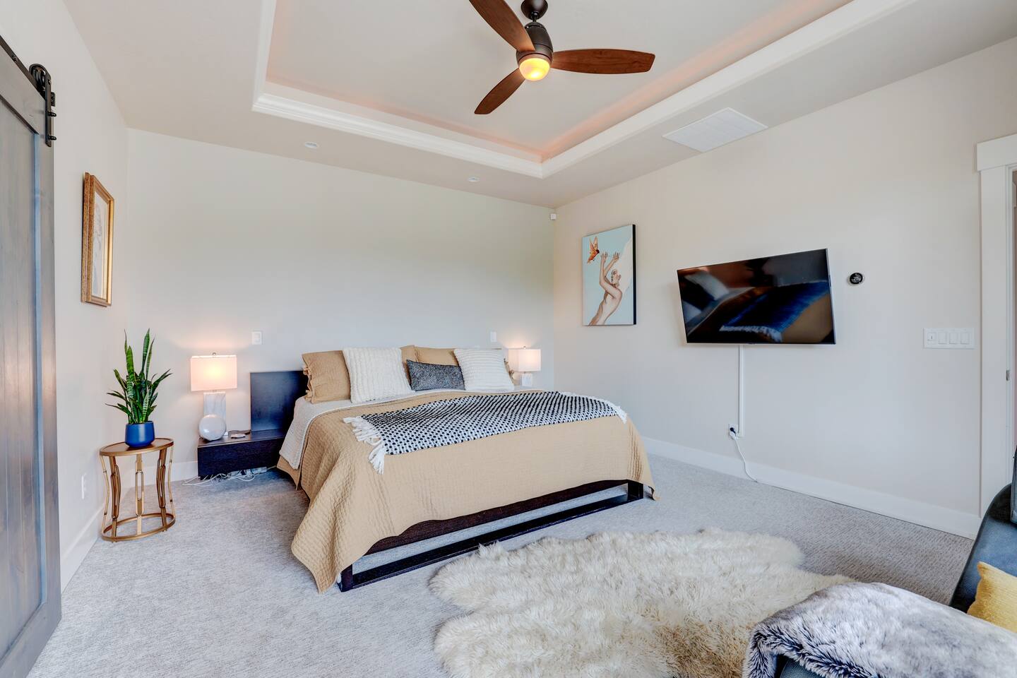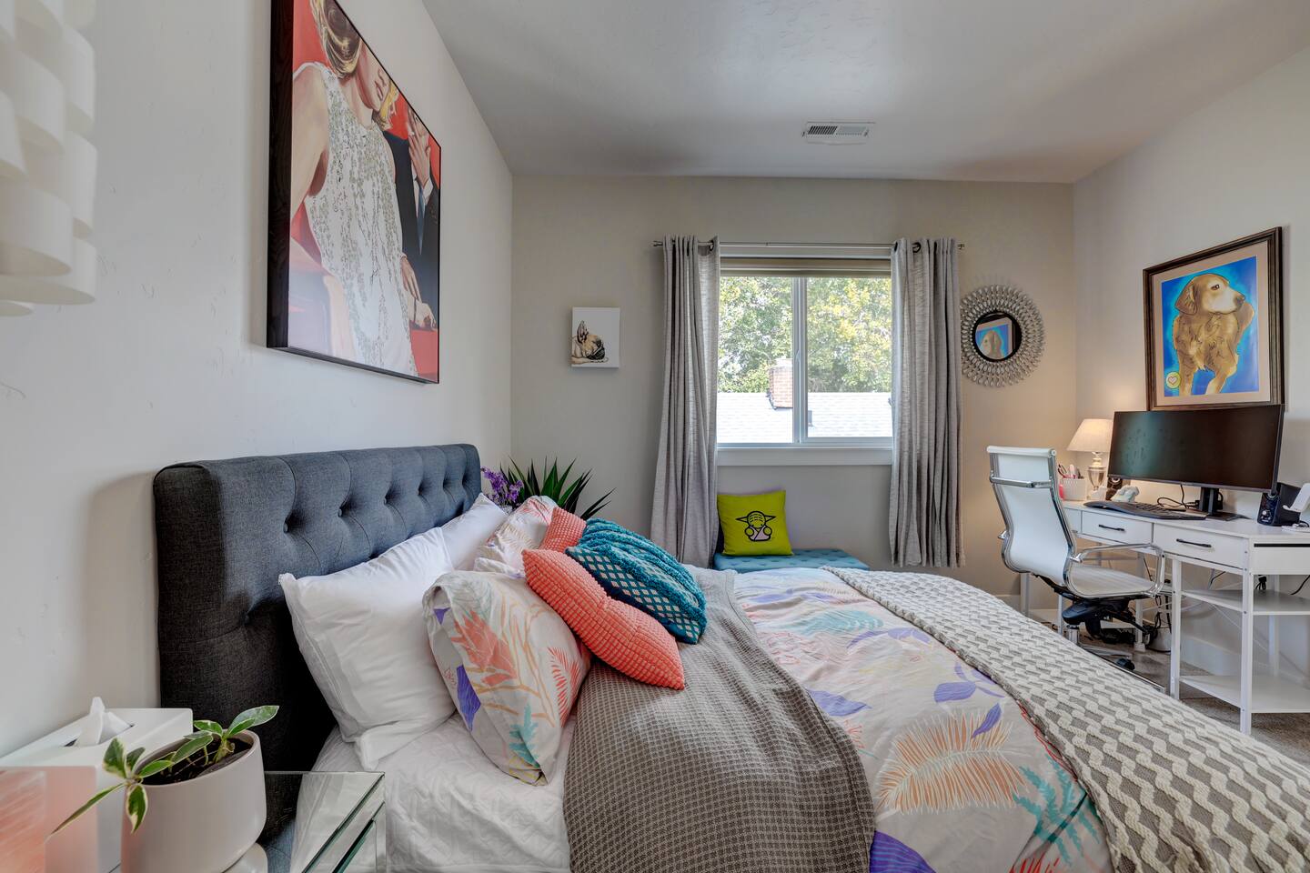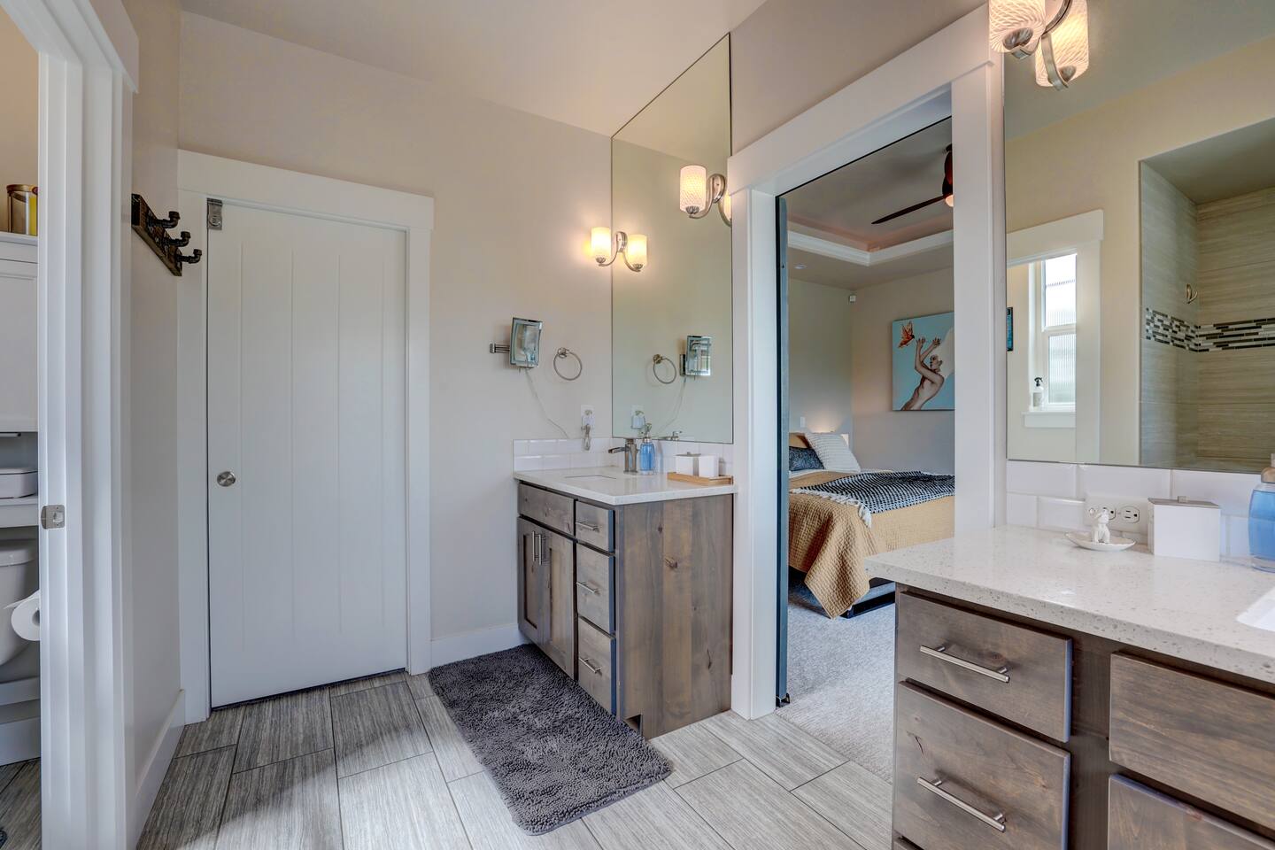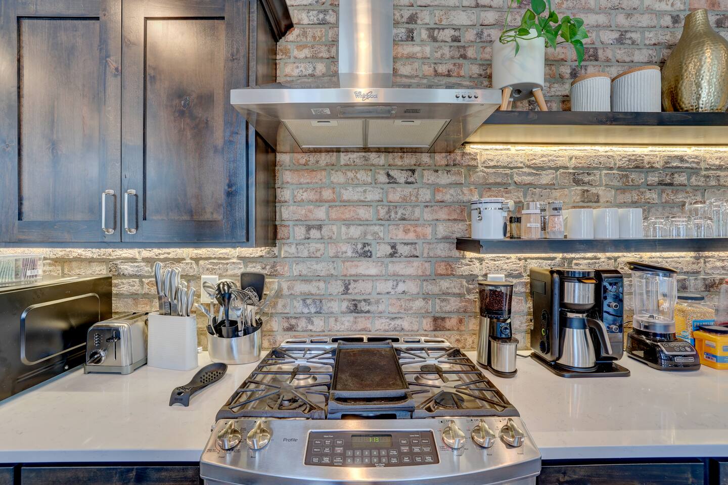 The Urban Retreat is a beautifully and thoughtfully designed and decorated home. The owner of the home lives here generally one to two months at a time so you can rest assured that this property has it all! It's a two story home with a patio on each level; the main level patio boasts a fireplace, and the second story, a sectional couch and sauna! Inside on the main level you'll be greeted with high ceilings and sweeping windows. From the the main entry area, you'll see the living room, a small library of books and games, the fully stocked kitchen, and the dining area. Also on the main level is a powder bathroom and fireplace. Up the flight of stairs are two bedrooms, both ensuite. The first bedroom you come to is a double bed, and the main bedroom down the hall is a king bed. Enjoy your time on either patio and make sure you help yourself to the sauna!