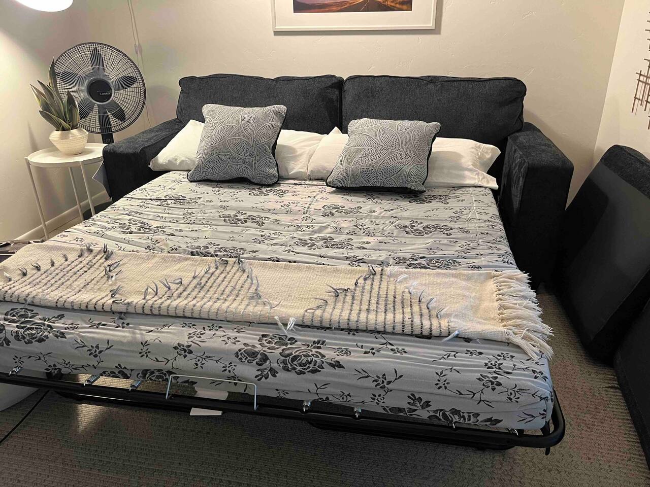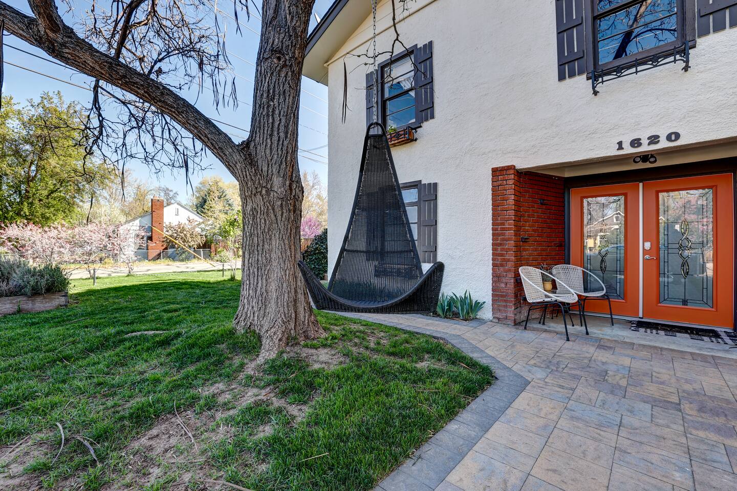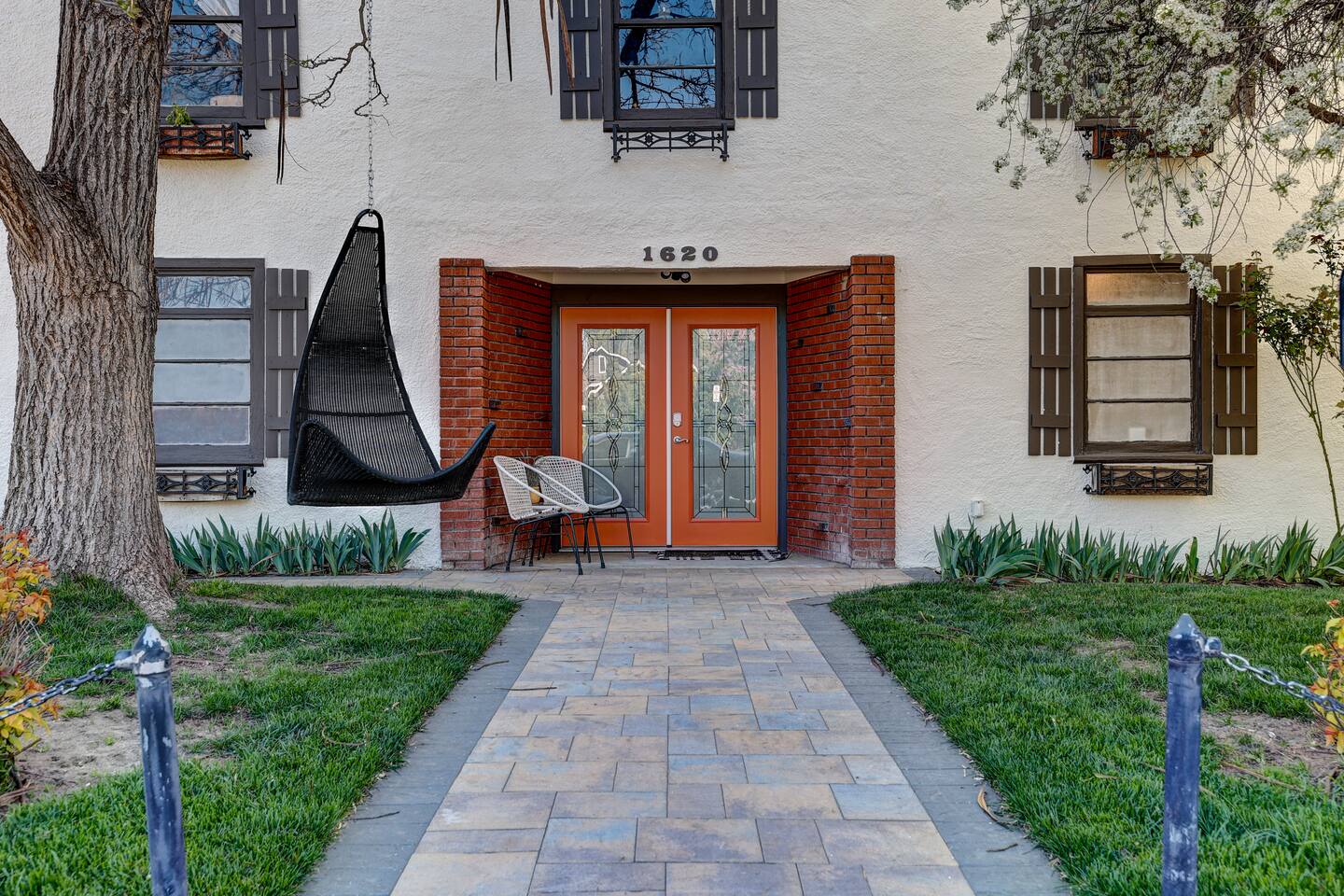You will have your own private ground floor apartment consisting of one bedroom and one bathroom with separate living and dining room and a full beautiful kitchen. The bedroom is large and airy with a king size bed dressed in clean, white linens. In addition, there is a queen sofa bed with memory foam mattress in the living room. The bathroom has all the necessary features including a hair dryer and a tub/shower combo. Also included in the apartment is washer and dryer as well as an iron and ironing board. The kitchen is outfitted with plates, cups, bowls, pans, flatware, and etc. It has a full size refrigerator, dishwasher, range, and microwave. A coffee maker and toaster are also supplied. Blazing fast Wifi is provided. The entire suite is yours. Enjoy the beautiful front yard and with outdoor seating and a fun swing!
