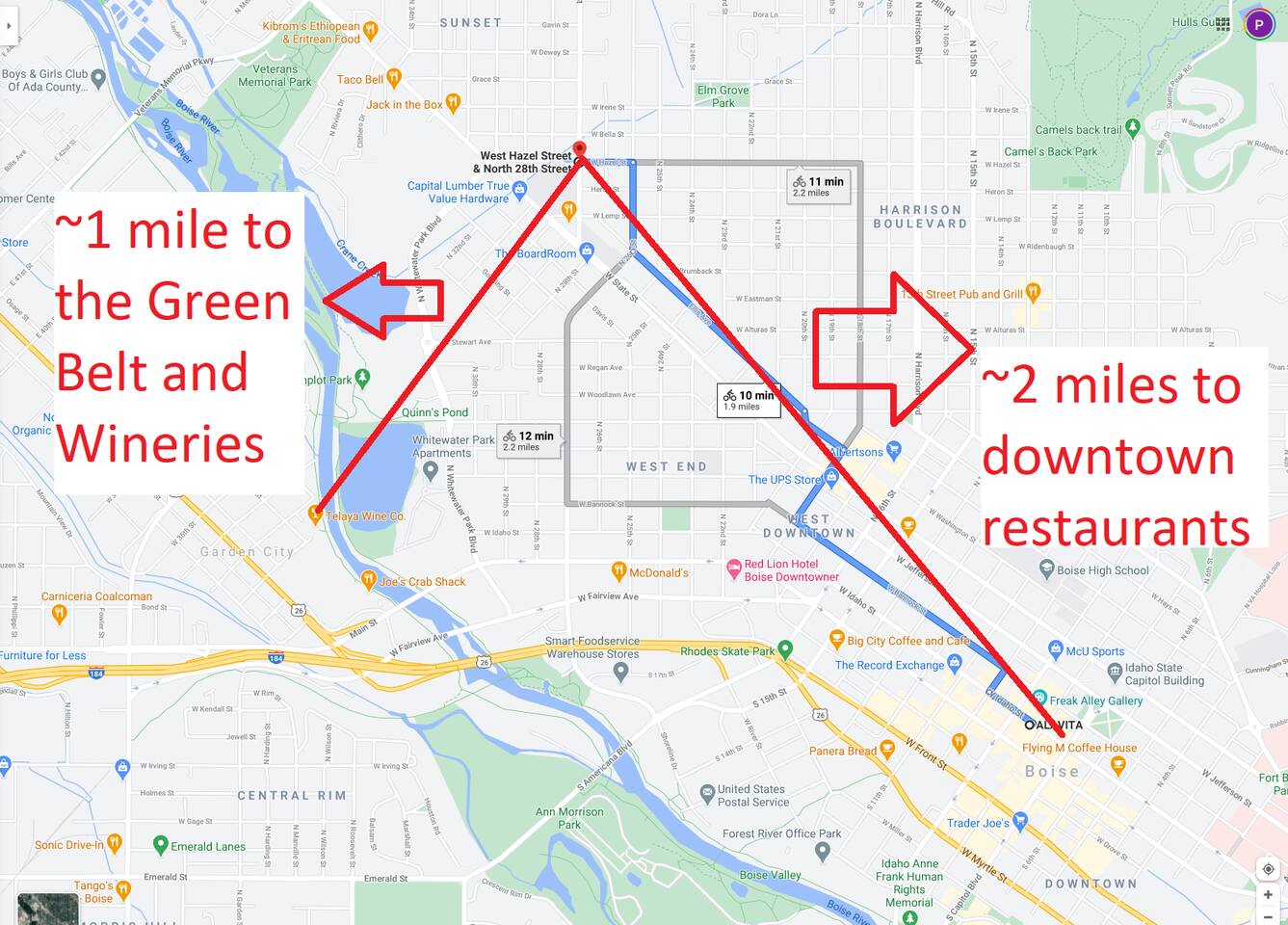 This recently remodeled, street level haven is part of a triplex located in Boise's North End. This sweet abode was once part of a church and retains a lot of that charming character. Inside you will find the original 12-foot ceilings combined with modern amenities and beautiful furnishings. Perfectly located in a fun, friendly and safe neighborhood. Just minutes from downtown, the new Whitewater Park and the Greenbelt. Internet is blazing fast with ~700 MBps down!