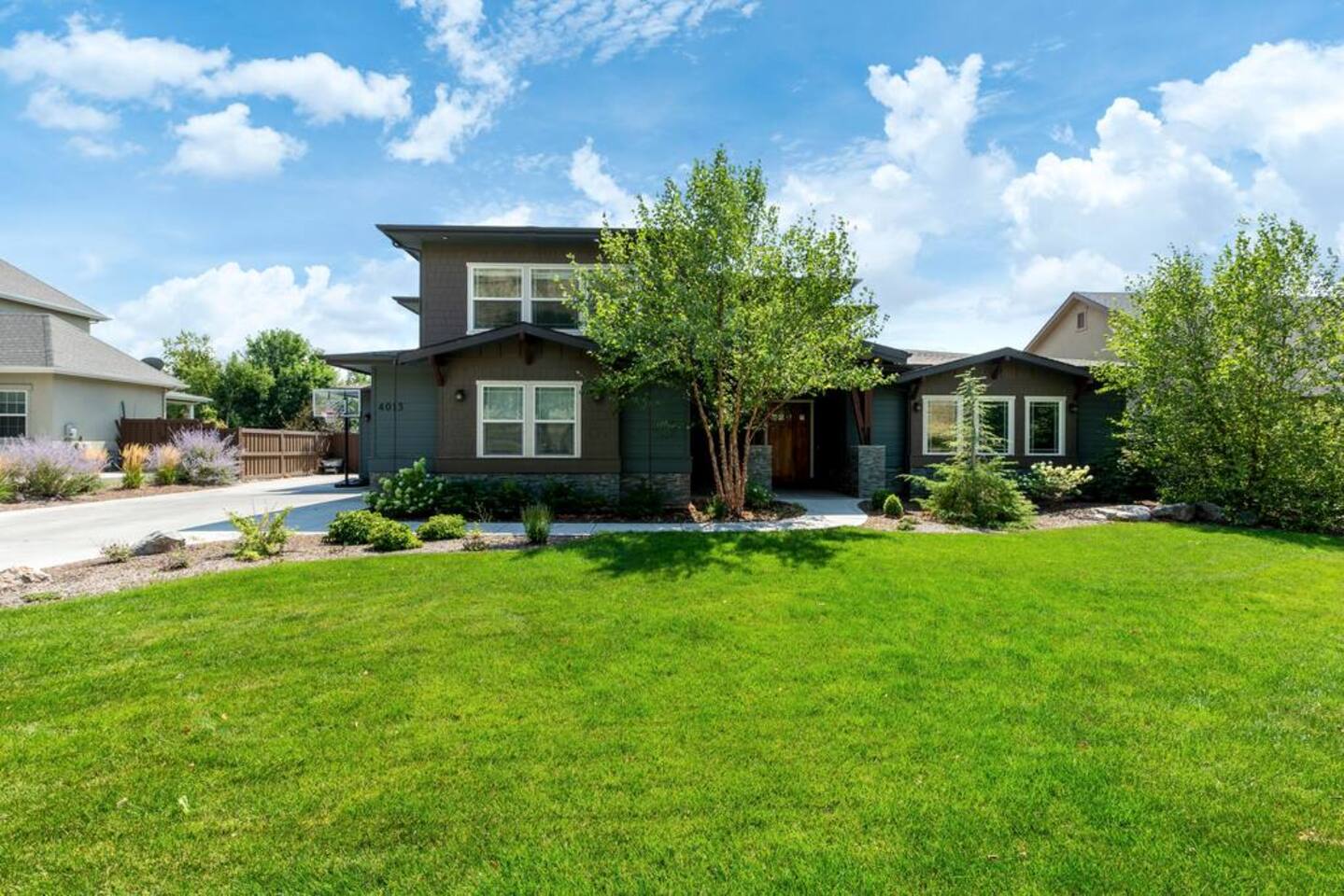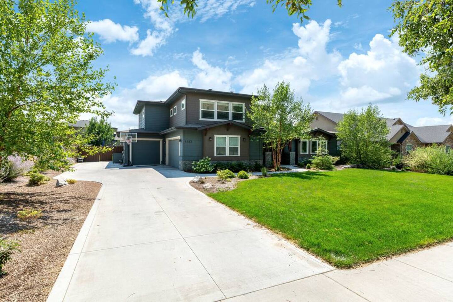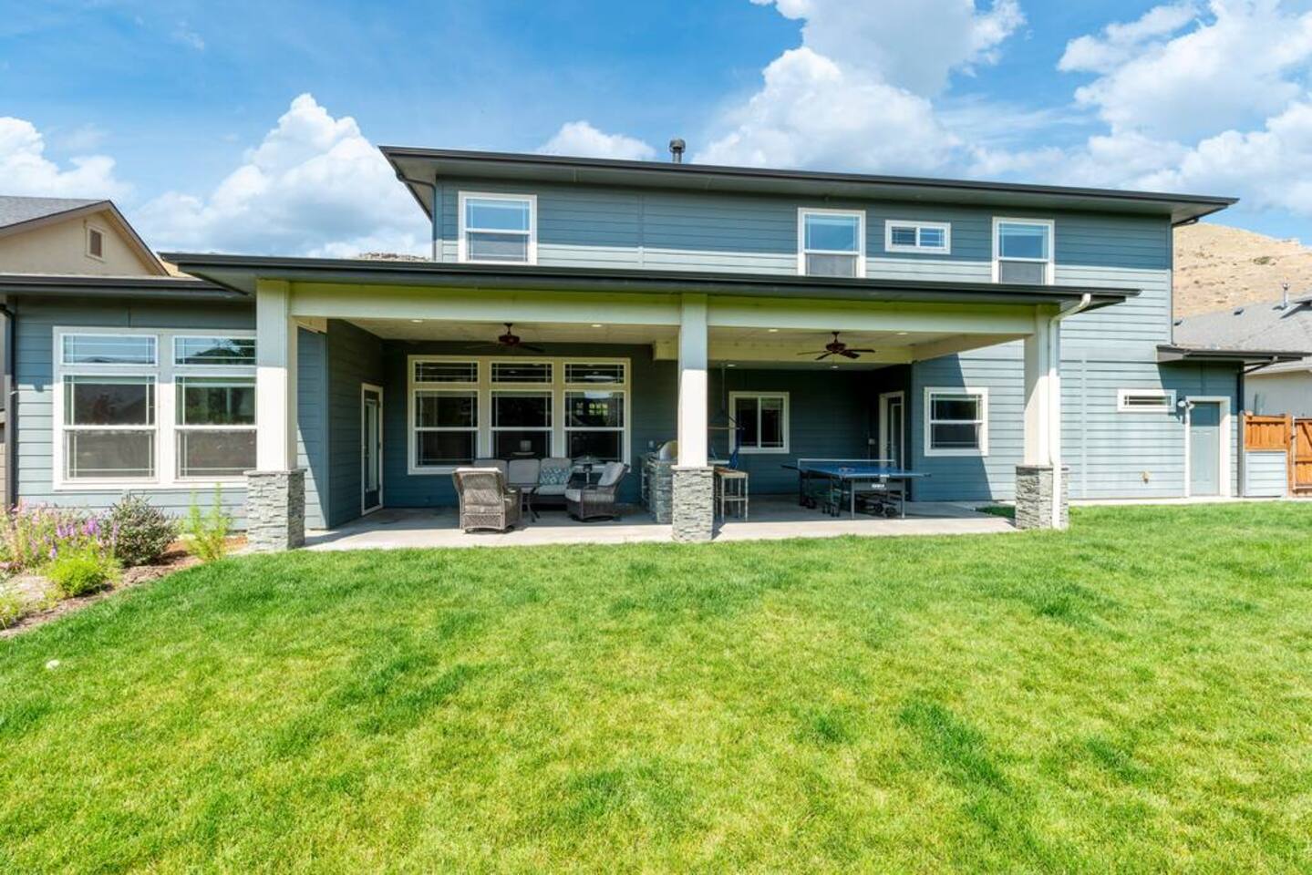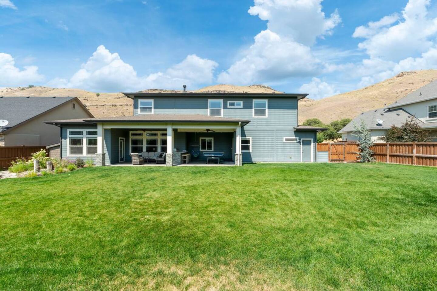 There isn't another Harris Ranch home like this available for your family vacation or company retreat. Situated at the base of the Boise Foothills, this beautiful home is the right size for your family to relax, unwind, and to find some solitude. Watch a movie in the theater room, grill on the covered patio with a built-in natural gas barbecue, play a game of ping-pong, or hop around on the trampoline. During summer months, you're also welcome to take a dip in the community pool!