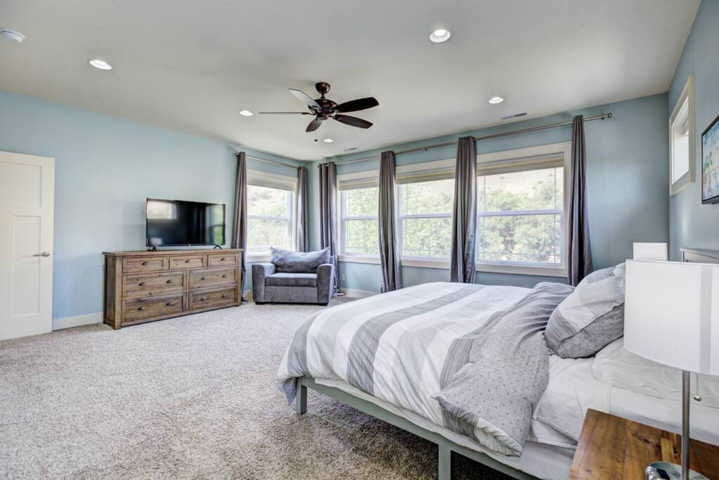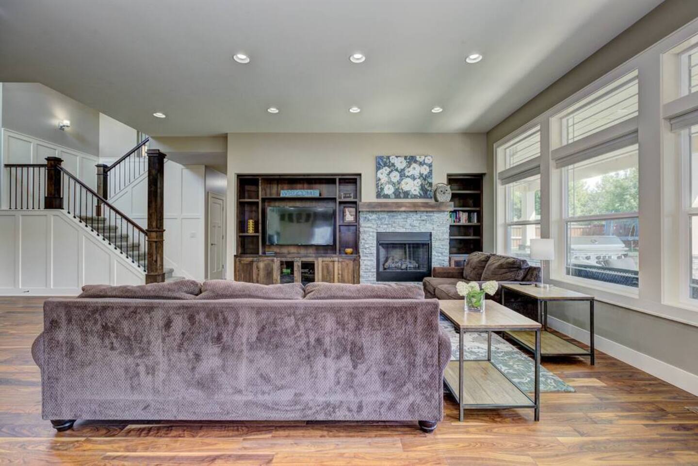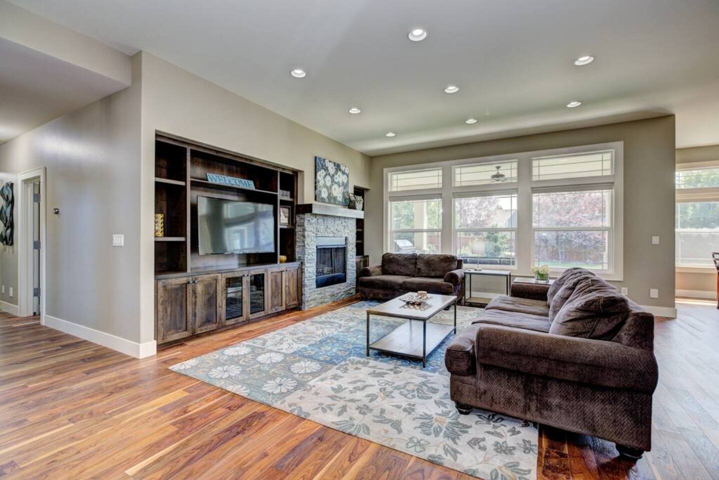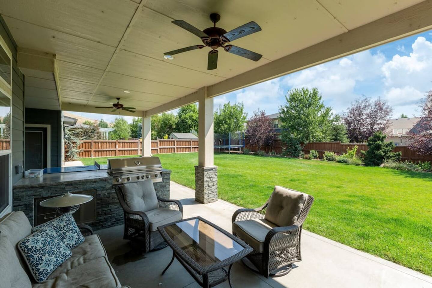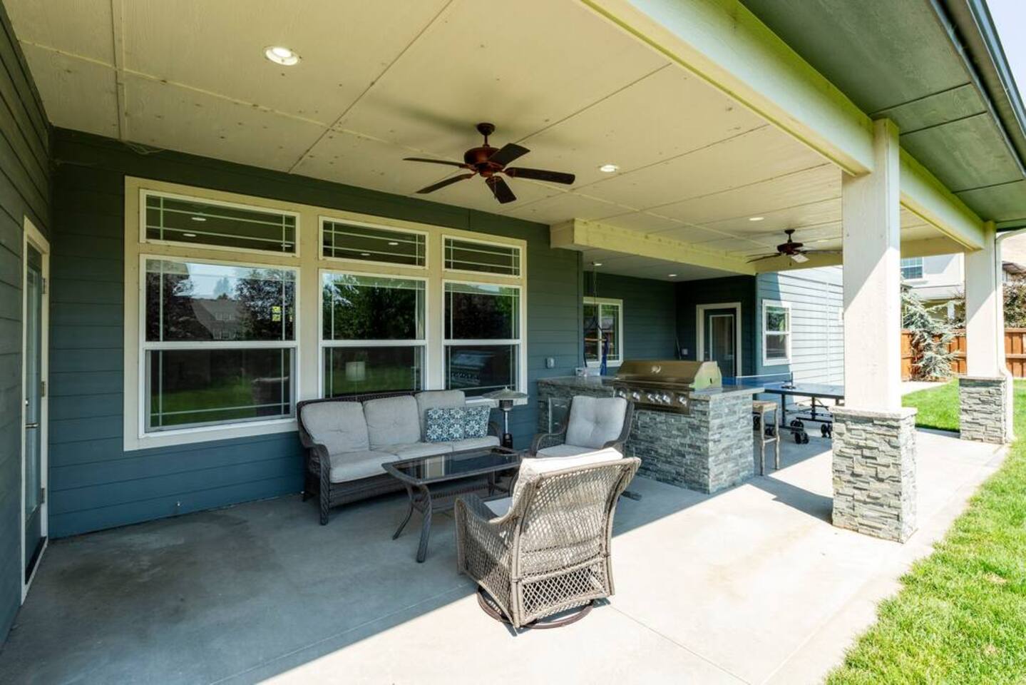 There isn't another Harris Ranch home like this available for your family vacation or company retreat. Situated at the base of the Boise Foothills, this beautiful home is the right size for your family to relax, unwind, and to find some solitude. Watch a movie in the theater room, grill on the covered patio with a built-in natural gas barbecue, play a game of ping-pong, or hop around on the trampoline. During summer months, you're also welcome to take a dip in the community pool!