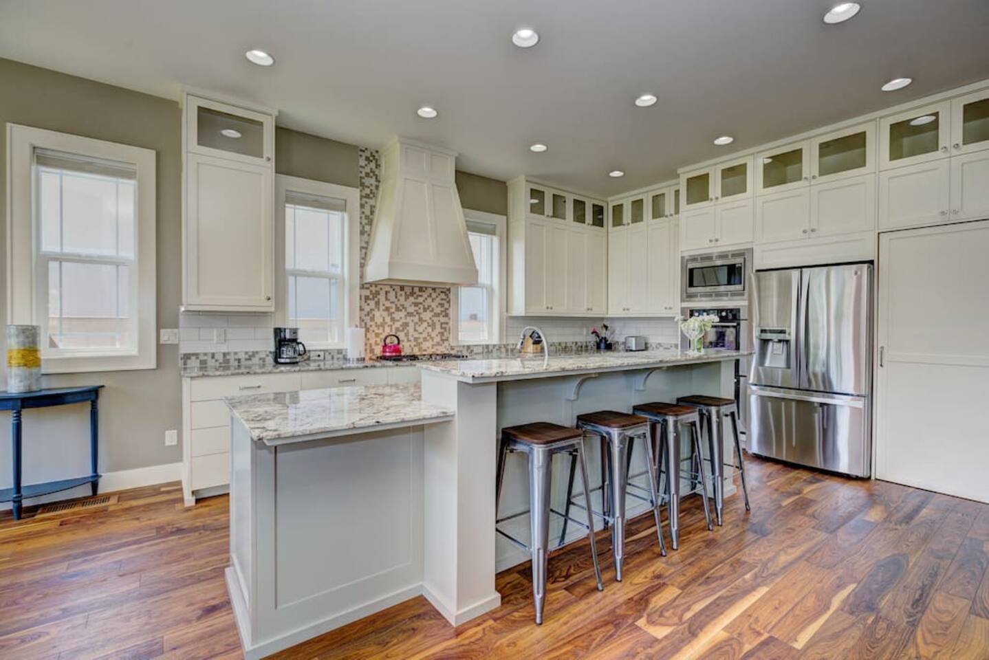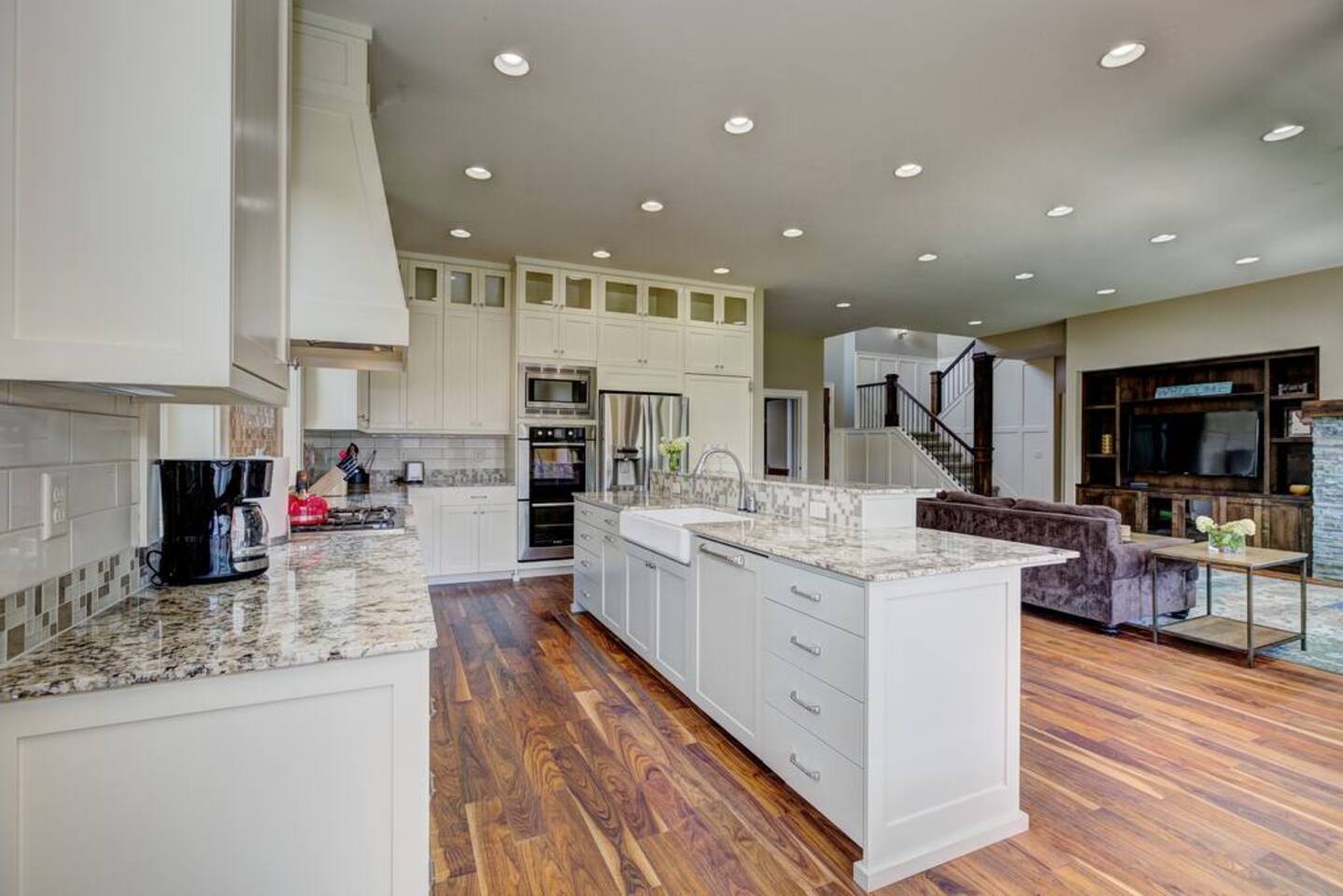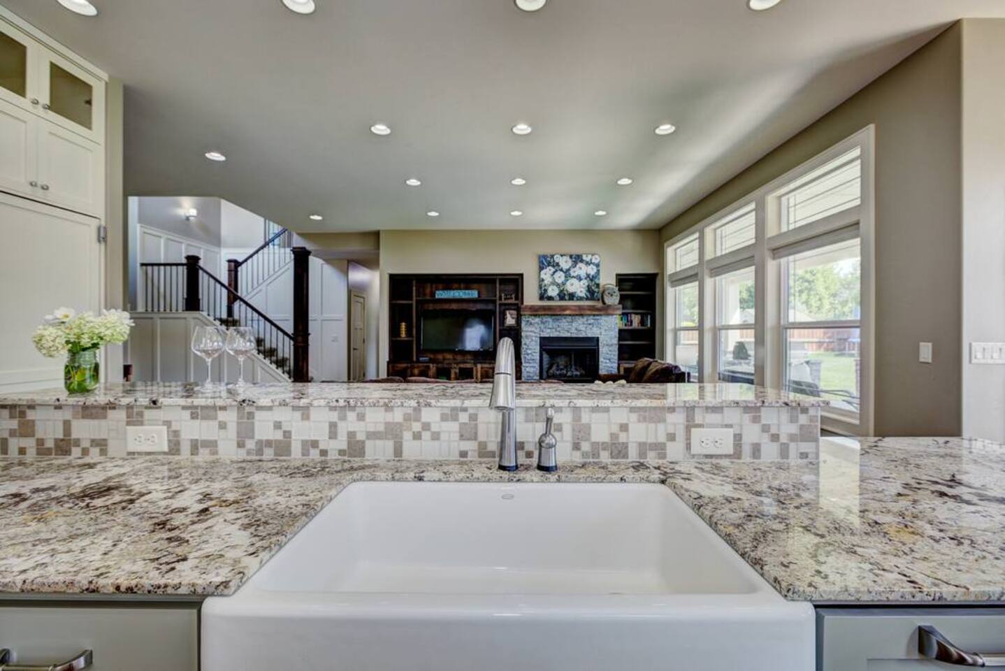 The home has a great room concept so that all guests can be together while cooking, eating, or relaxing. The main level also has a private office workspace, a mudroom, bedroom, full bathroom, theater, dining area and kitchen. Upstairs has four bedrooms, two full baths, and a laundry room. Outside has a long driveway, basketball hoop, covered patio, ping-pong table, trampoline, and seating area. The kids are going to love this house!