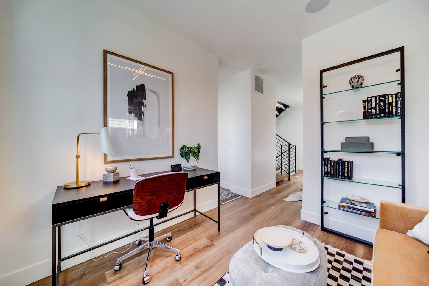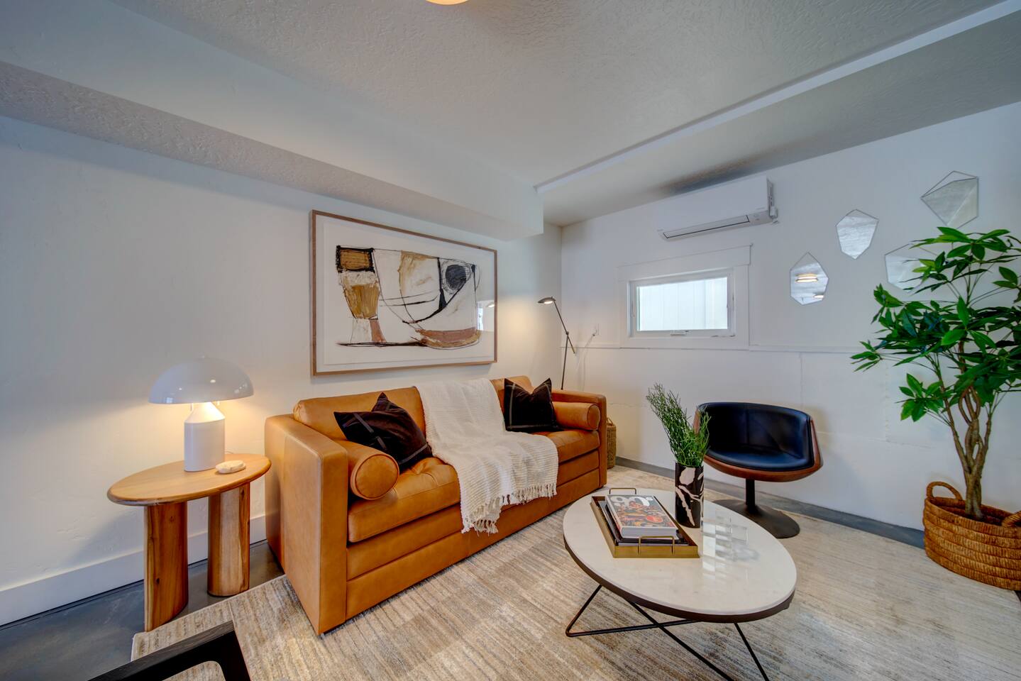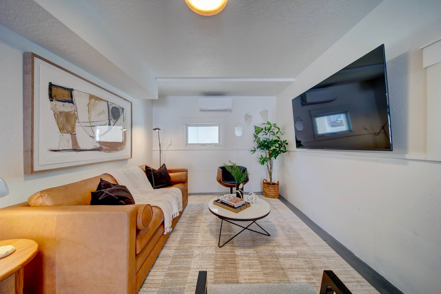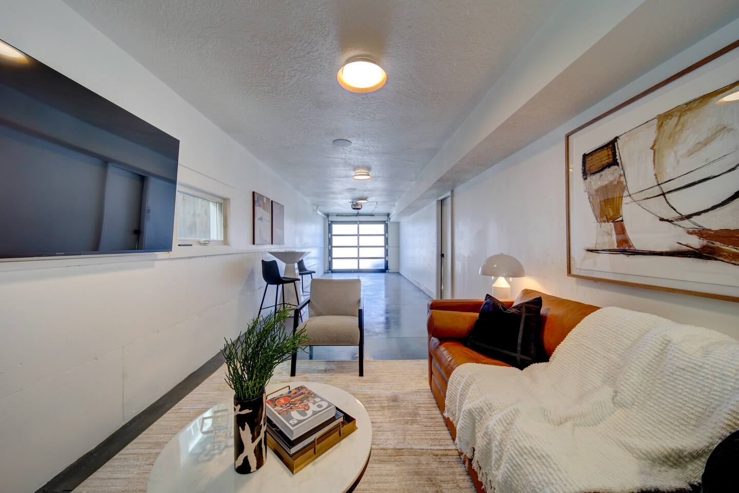 You are staying in a freestanding 1800 square foot newly built home with modern amenities including washer and dryer and gas fireplace. There is a full complement of cooking supplies, coffeemaker, ice maker and luxury appliances to prepare meals. The blue accents in the decor offset the caramel hues in the wood to make a playful and fun space. The garage has been outfitted for the perfect space to play games, watch a movie, and have a good nights sleep on the pull out couch. You’ll find a spacious porch with a patio couch to enjoy the weather, overlooking a picket fence. MAIN LEVEL Kitchen Half-Bath Office/Den w/Sofa Sleeper (Full) Living Room w/Fireplace Dining Kitchen Balcon Patio UPPER LEVEL Main Bedroom Suite King Bed Large Walk-In Closet Ensuite Bathroom LOWER LEVEL Second Bedroom Queen Bed Full Bath Laundry GARAGE/GAME ROOM Sofa Sleeper (Full) TV Games (Coming soon!) BED LOCATION/SIZES King Bed, Upper Level, Main bedroom Ensuite Queen Bed, Lower Level, Second bedroom Sofa Sleeper, Main Level, Office Sofa Sleeper, Lower Level, Garage/Game Room