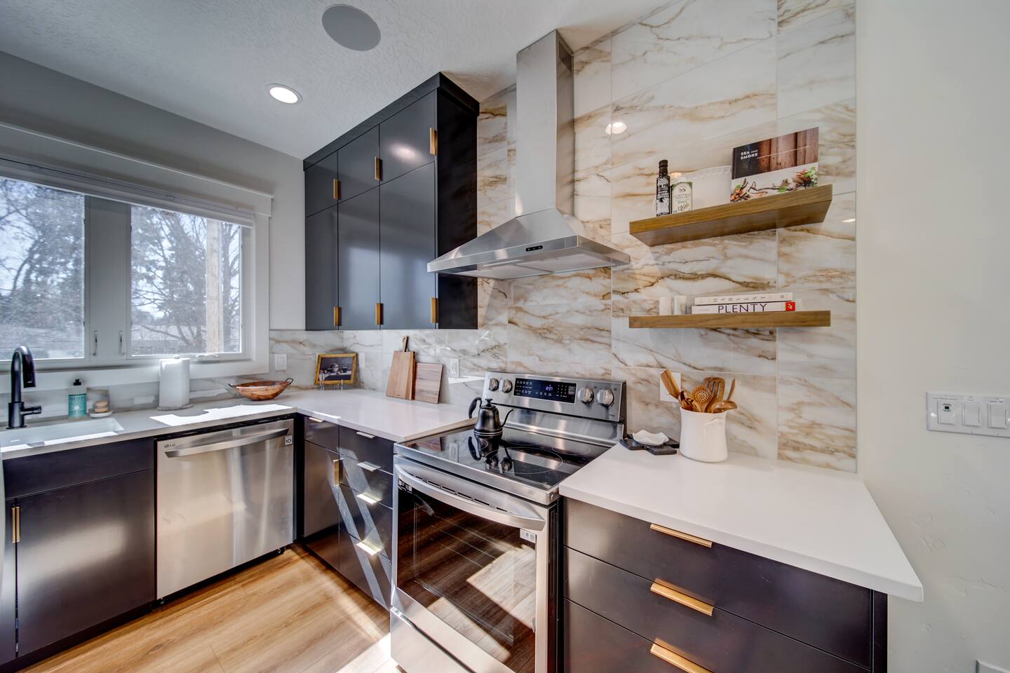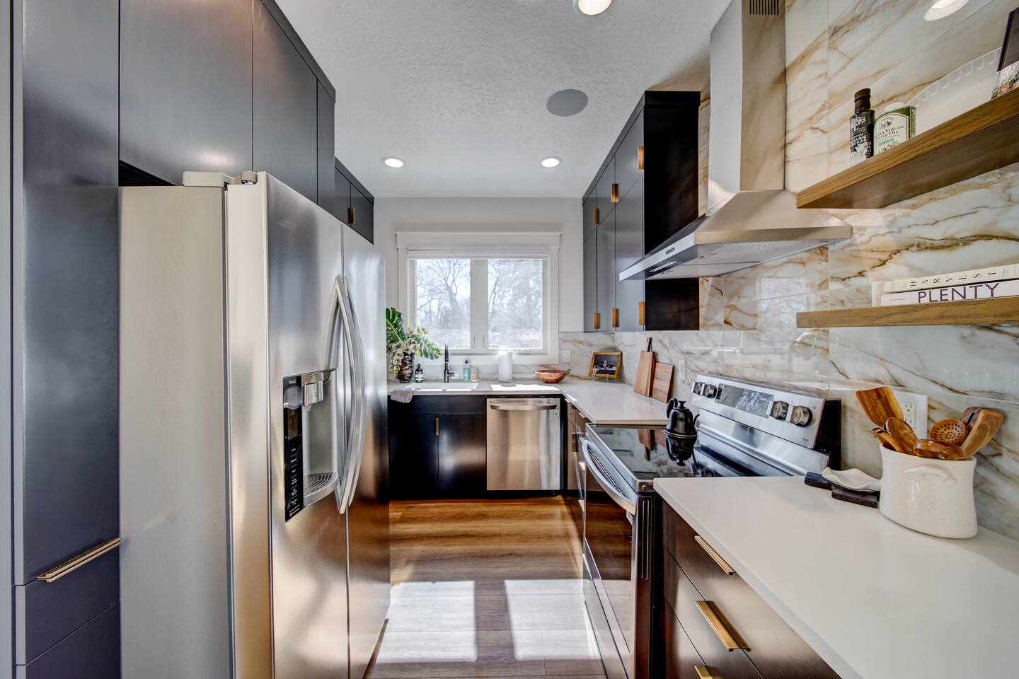 It's hard to find a modern home to stay in the North End but look no further. Construction completed Spring '24 with three floors to relax and entertain. Sit by the fireplace and watch HDTV or get some work done in the office and look out at the mountains. The kitchen is a chef's delight with stainless steel appliances and wifi-enabled speakers stream your favorite music on every floor. Relax and watch the big game on a 65" Sony TV in the garage or ride supplied cruiser bikes to the park...