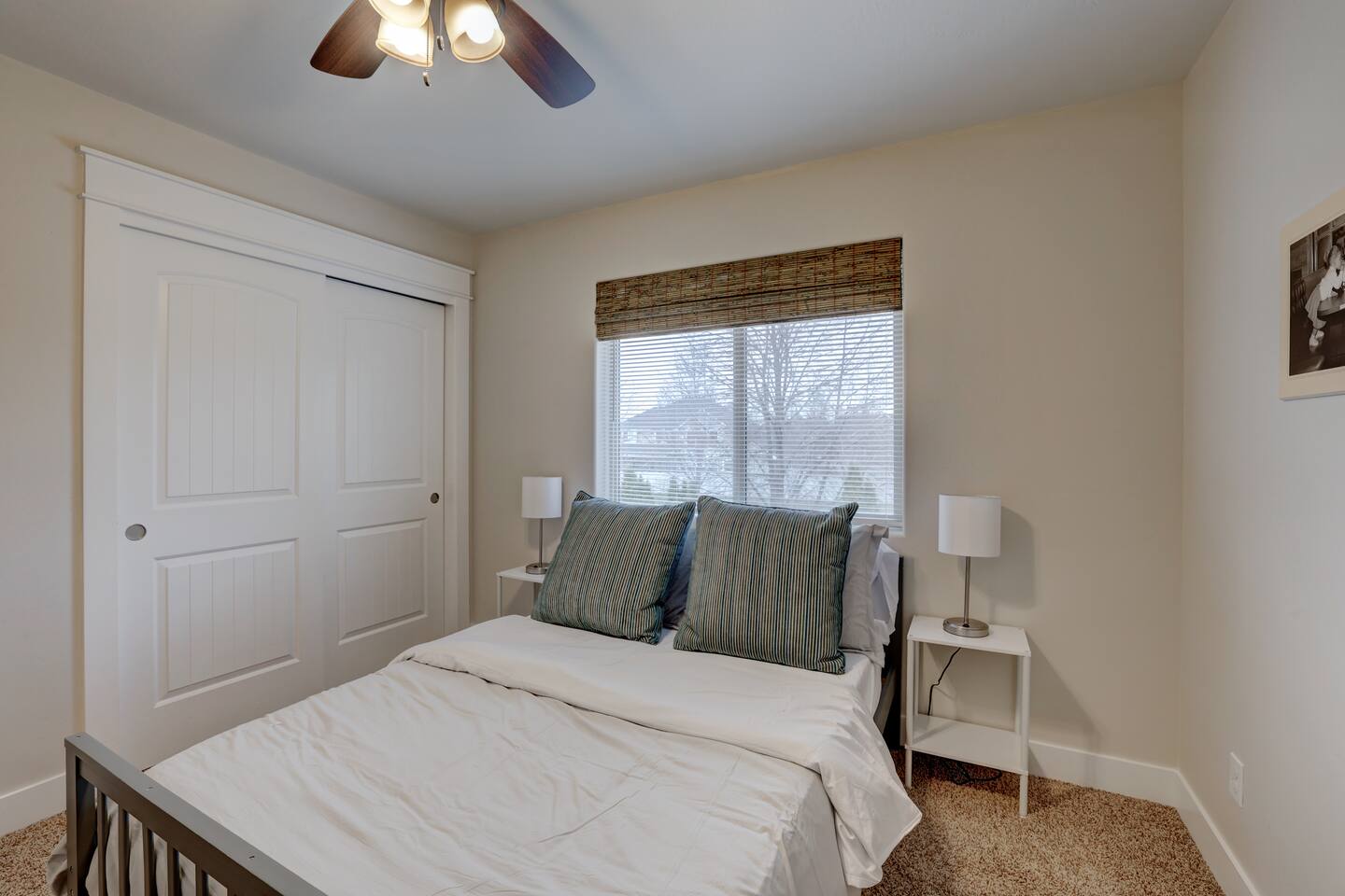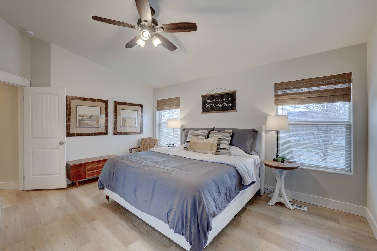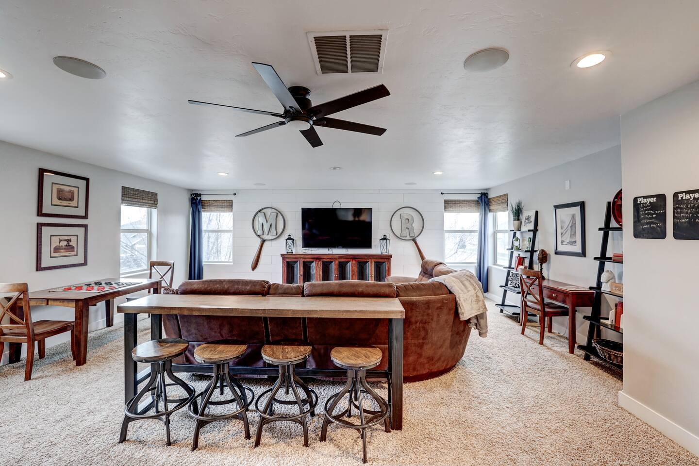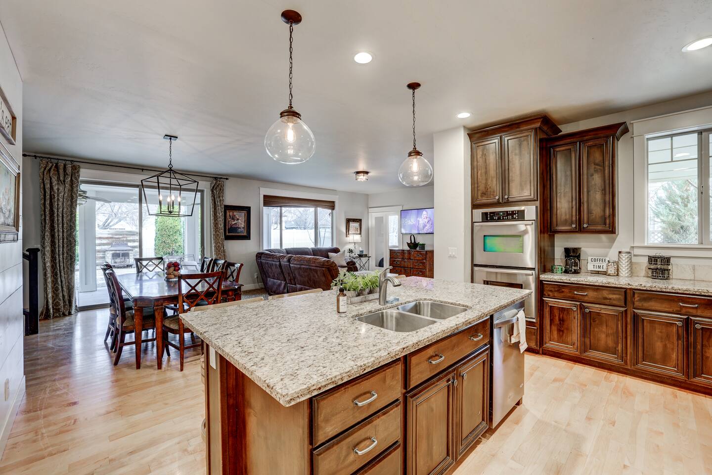 ---Welcome--- We’d be happy to host you at this spacious Meridian home with 2,991 square feet! Perfect for families or groups, this home offers everything you need for a comfortable and memorable stay. ---Living Room--- Cozy seating for your group Smart TV with local channels and streaming apps Open layout connecting to the dining area ---Family Room--- Games and activities for all ages Smart TV for extra entertainment Spacious area perfect for relaxing or movie nights ---Kitchen--- Fully stocked and a chef’s dream! Modern appliances, including a dishwasher and coffee maker Ample counter space for meal preparation ---Bedrooms--- Master suite: king bed, soaker tub, and separate shower Upstairs: one queen bedroom and one double bedroom Main floor: queen bedroom for added convenience ---Outdoor Space--- Large fenced backyard with an outdoor dining area Wood-burning fireplace for cozy evenings Fire pit for group gatherings ---Additional Amenities--- Indoor gym for staying active Washer/dryer for guest use Off-street parking for 5 vehicles ---Community Amenities--- Seasonal community pool (Memorial Day–Labor Day), a short walk from the house Community center available for events (seats 40 with six tables; $150 rental fee per day, subject to HOA calendar availability) ---Pet Policy--- We welcome up to 2 dogs with special rules.