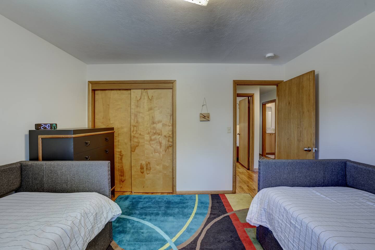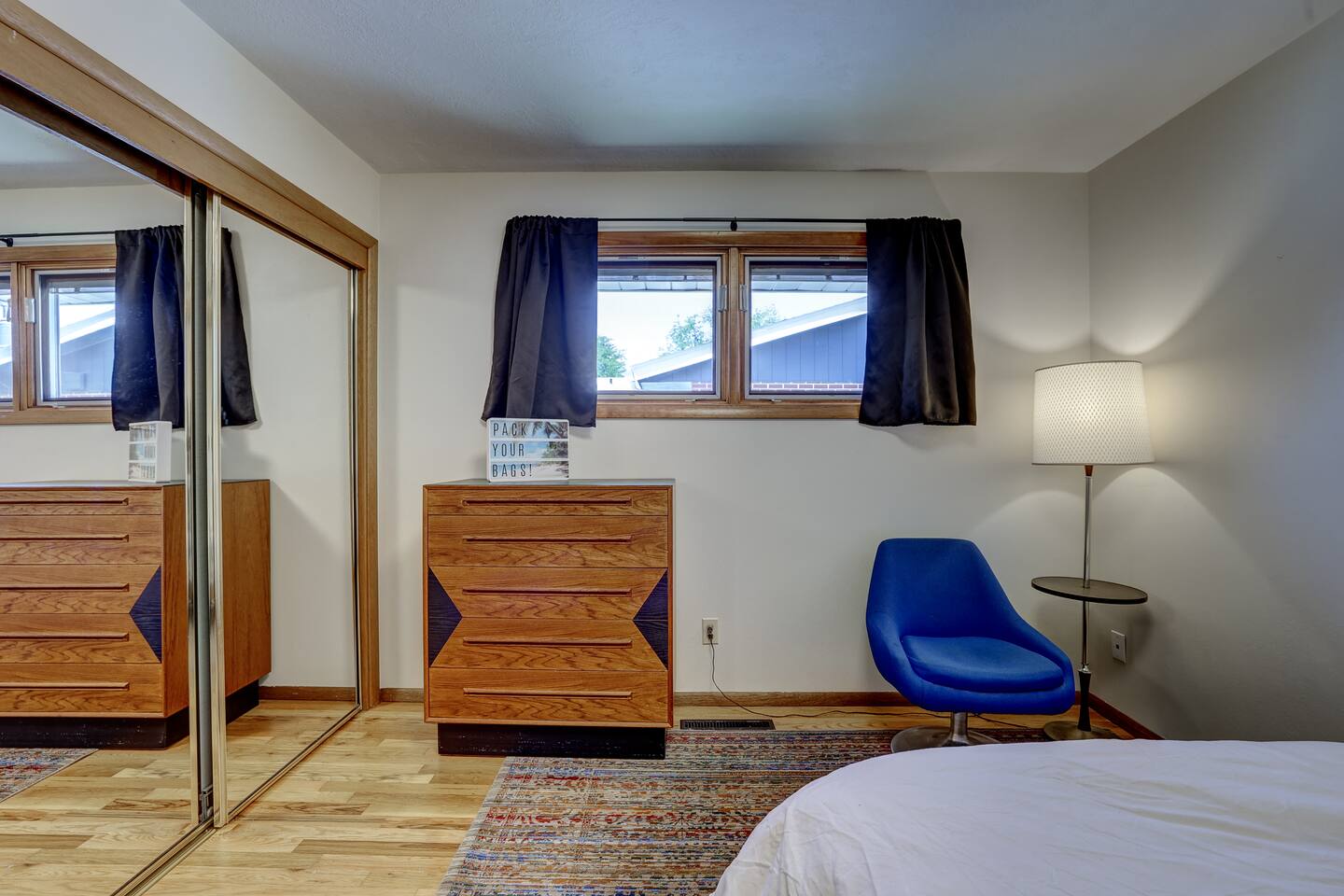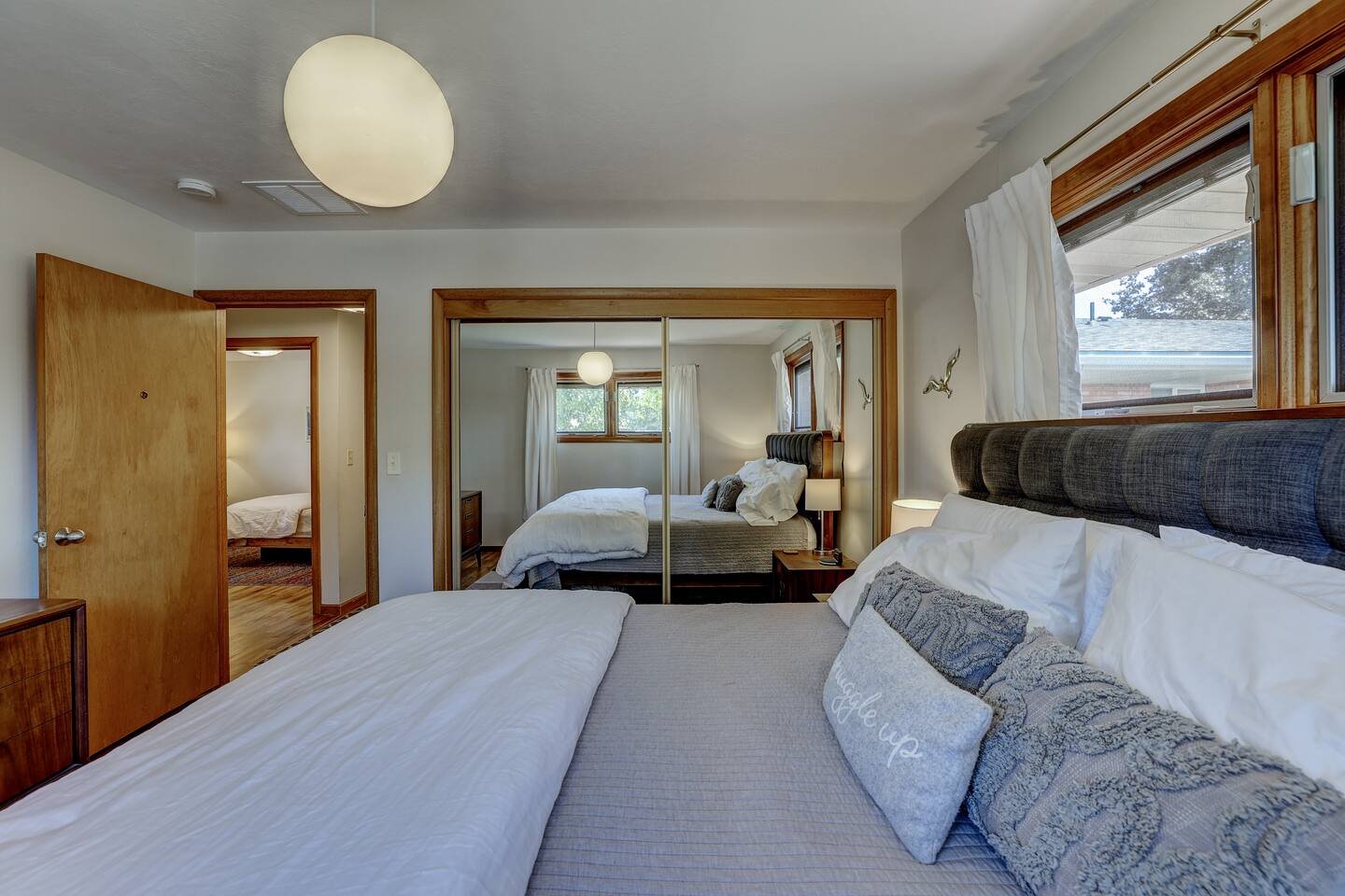 π‘ Property Overview 3 bedrooms, 2 full bathrooms 1,858 sq ft single-level mid-century ranch Central heating & air conditioning High-speed WiFi throughout π Parking Attached 2-car garage Additional driveway parking π½οΈ Kitchen Full-size appliances (range, oven, fridge, dishwasher) Movable island & breakfast seating Drip coffee maker, grinder, milk frother Reverse osmosis drinking water Fully stocked with cookware, utensils, dinnerware ποΈ Living Room Gas fireplace Smart TV Large picture windows overlooking backyard π₯οΈ Office / Dining Room Dual mechanical standing desks Dual computer monitors Adjustable chairs Also serves as formal dining area ποΈ Bedroom 1 (Primary) King bed Closet & dresser storage Blackout curtains ποΈ Bedroom 2 Two twin daybeds Closet & dresser ποΈ Bedroom 3 Queen Murphy bed Can double as additional workspace or flex room π Bathrooms (2) Both fully remodeled Shower/tub combos Quality towels & toiletries π§Ί Laundry In-unit washer & dryer Iron & ironing board π³ Outdoor Space Pergola-covered patio with seating Natural gas grill Childrenβs play structure Fully fenced yard π§ Water Systems Brand new plumbing throughout Instant hot water at all taps Water softener 5-stage reverse osmosis filter π Location Quiet residential street in West Boise Walkable to parks, community pool (Borah Park), elementary & high schools Quick access to downtown Boise, Meridian, and freeway
