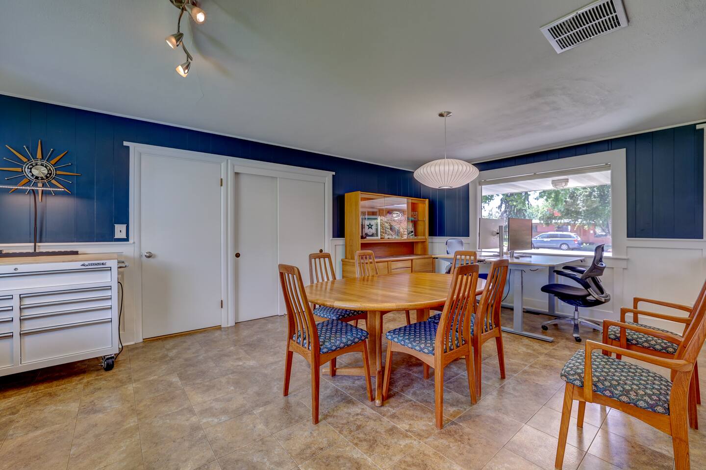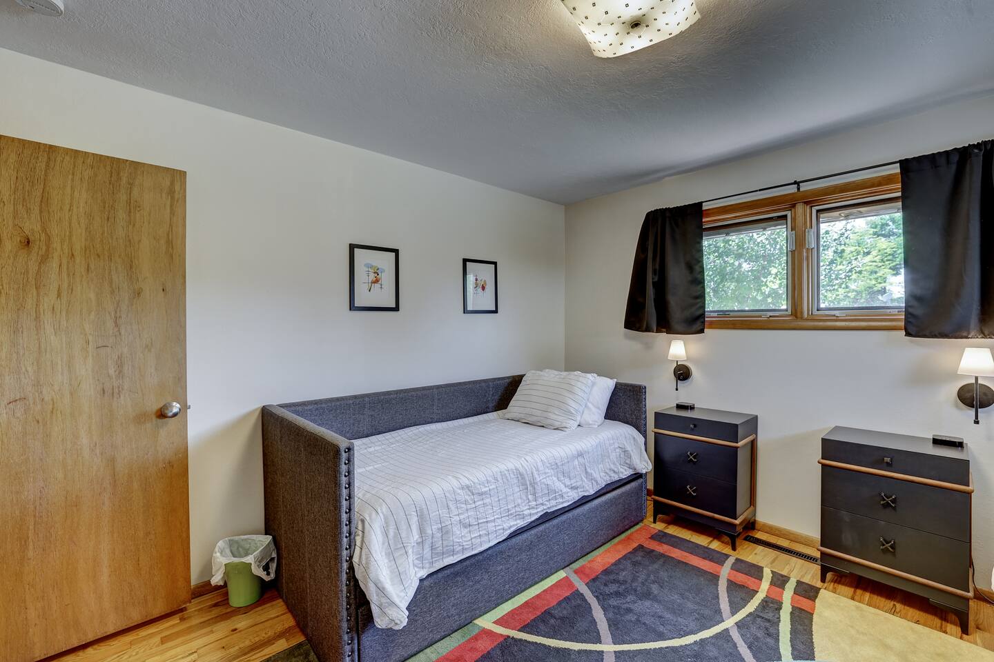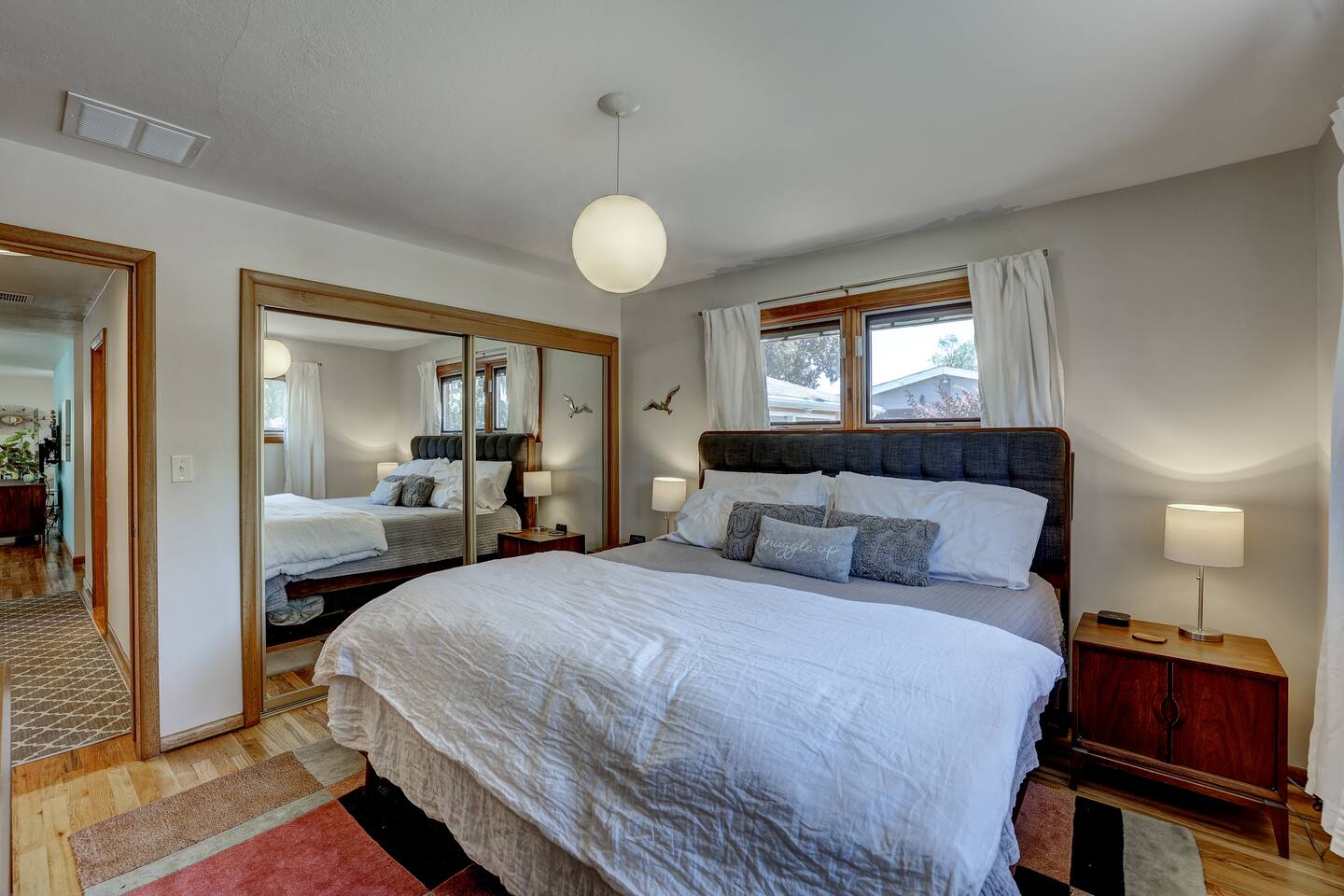 π‘ Property Overview 3 bedrooms, 2 full bathrooms 1,858 sq ft single-level mid-century ranch Central heating & air conditioning High-speed WiFi throughout π Parking Attached 2-car garage Additional driveway parking π½οΈ Kitchen Full-size appliances (range, oven, fridge, dishwasher) Movable island & breakfast seating Drip coffee maker, grinder, milk frother Reverse osmosis drinking water Fully stocked with cookware, utensils, dinnerware ποΈ Living Room Gas fireplace Smart TV Large picture windows overlooking backyard π₯οΈ Office / Dining Room Dual mechanical standing desks Dual computer monitors Adjustable chairs Also serves as formal dining area ποΈ Bedroom 1 (Primary) King bed Closet & dresser storage Blackout curtains ποΈ Bedroom 2 Two twin daybeds Closet & dresser ποΈ Bedroom 3 Queen Murphy bed Can double as additional workspace or flex room π Bathrooms (2) Both fully remodeled Shower/tub combos Quality towels & toiletries π§Ί Laundry In-unit washer & dryer Iron & ironing board π³ Outdoor Space Pergola-covered patio with seating Natural gas grill Childrenβs play structure Fully fenced yard π§ Water Systems Brand new plumbing throughout Instant hot water at all taps Water softener 5-stage reverse osmosis filter π Location Quiet residential street in West Boise Walkable to parks, community pool (Borah Park), elementary & high schools Quick access to downtown Boise, Meridian, and freeway