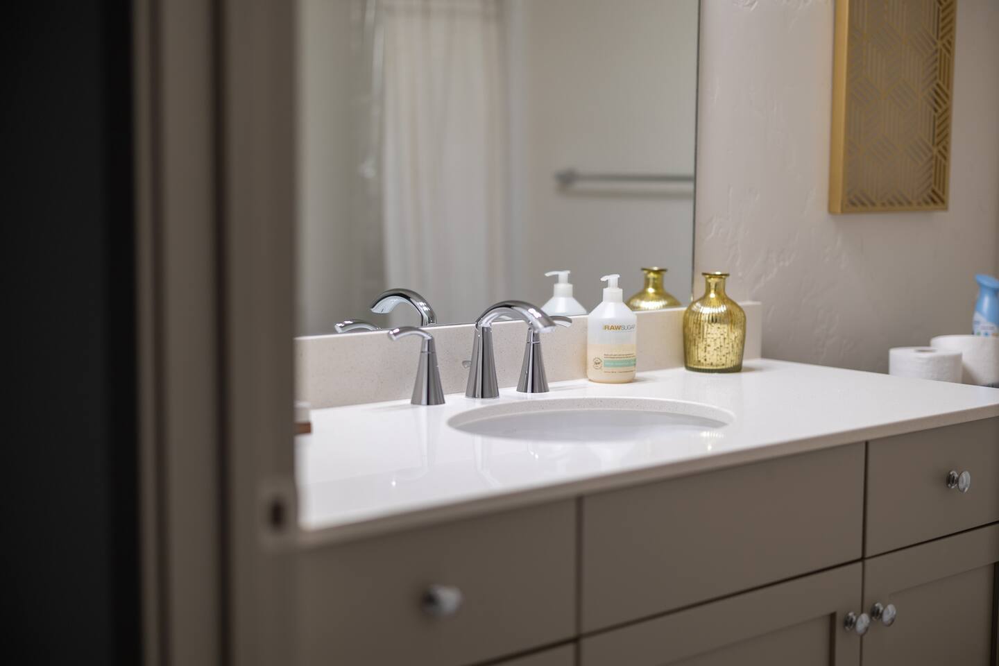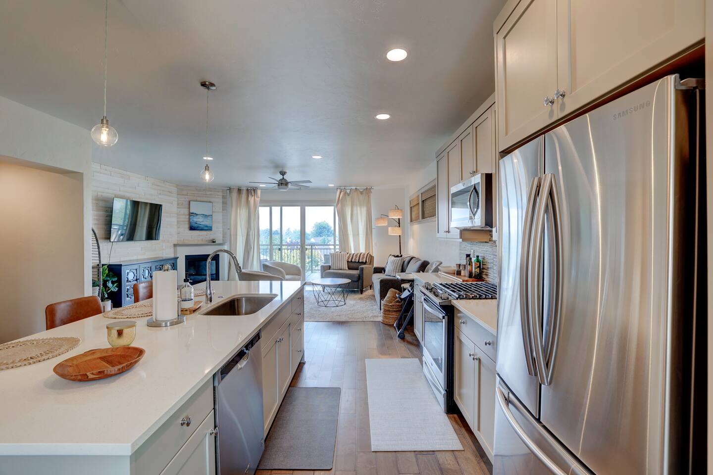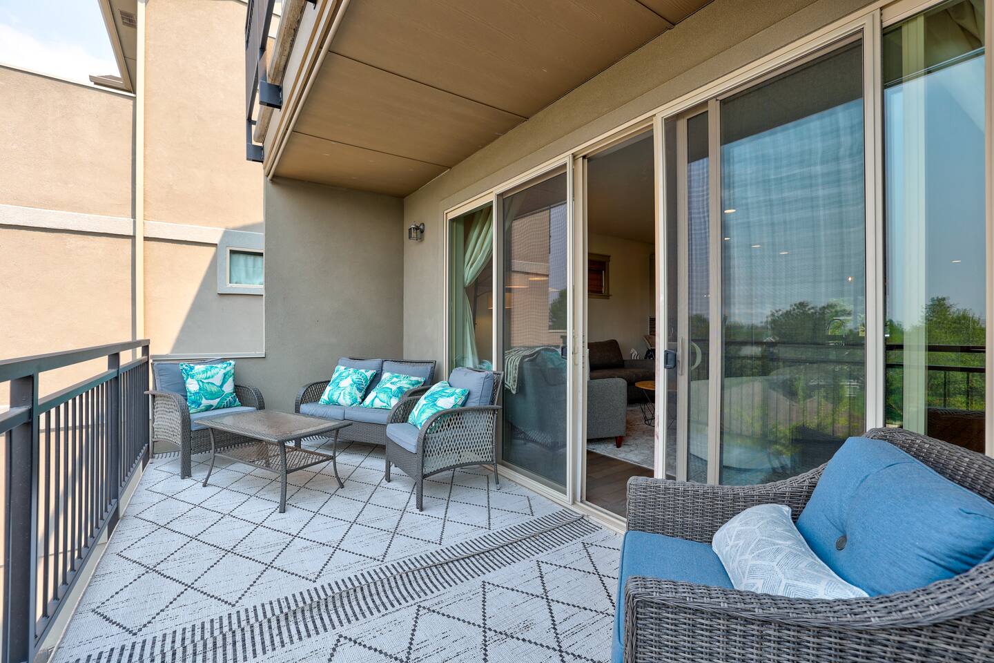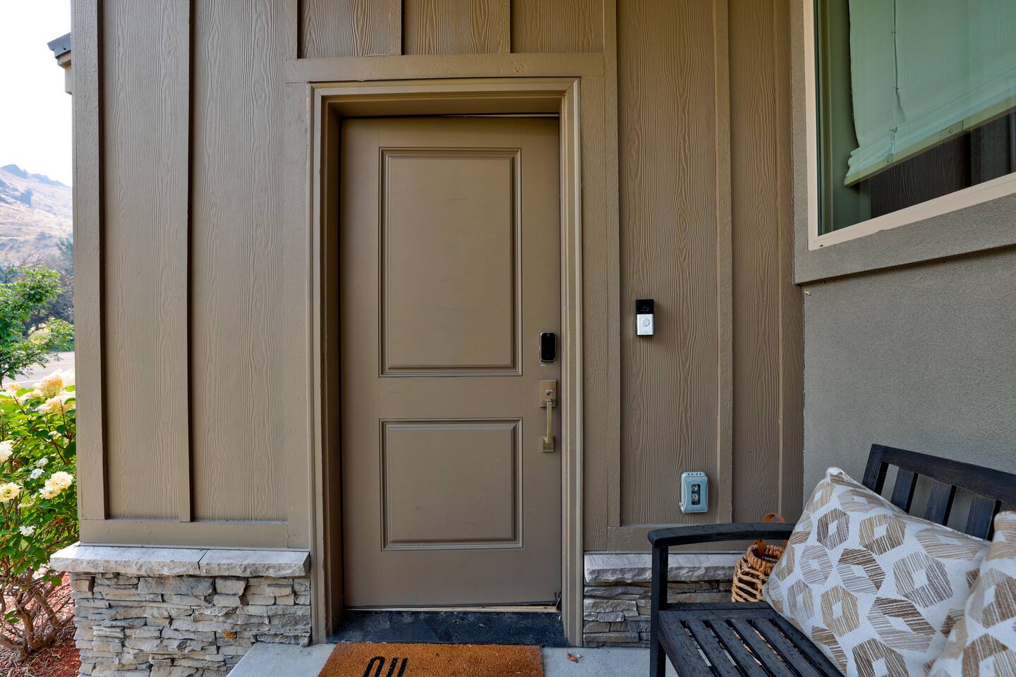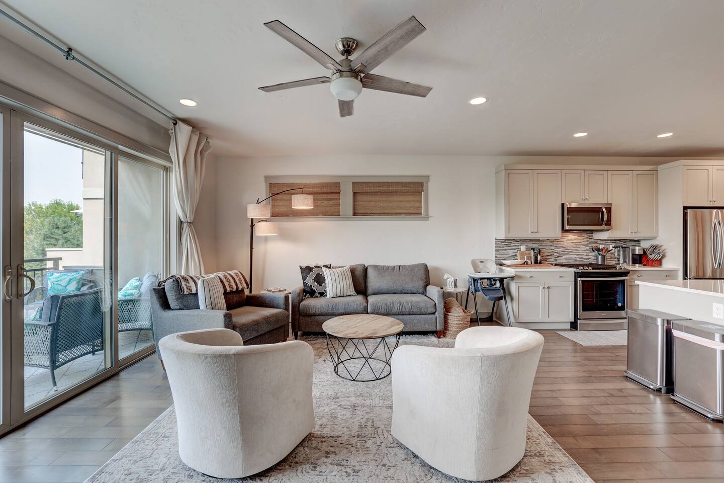 The property is a Two Story Home with a below-grade (basement) bonus room and garage. BELOW GRADE/BASEMENT -Garage Access: When you arrive, you'll be accessing the home through the garage on the back side of the townhome, specific instructions will be shared approximately three days before your check-in day and time. You'll have room in the garage for up to two fairly large vehicles. The owner has regularly parked a large Ford Truck and large SUV in the garage together. There are also a couple of spaces at the entrance of the parking lot first come first served. -Bonus Room: Upon entering the home through the garage, you'll be in the bonus room. The bonus room has a large comfortable sectional couch and a big-screen smartTV. That tv does not have a local tv channel antenna. MAIN LEVEL The main level consists of the front entryway, a dining area, a fully stocked kitchen, a living room, a powder bathroom, and a large balcony/patio. It is an open concept/great room design and is the home's heartbeat. -Kitchen: The kitchen is fully equipped for food prep, cooking, baking, and eating needs. There is enough dining ware for 6. There is a Keurig as well as a drip coffee maker. We provide some coffee, but if you're a big coffee fan, you may want to supplement. -Dining Area: The dining table accommodates 4, however, the adjacent breakfast bar can accommodate 3 additional. We also have a high chair for any kiddos that need it. -Great Room/Living Room: The living room has a large Smart TV, but also does not have an HD antenna for accessing local channels. You're welcome to log into your favorite apps, we do not provide login details for guests. There's a gas fireplace that is great for seasonal comfort. -Patio/Balcony: The patio balcony is a great place to relax, and catch a sunrise or sunset. UPSTAIRS The upstairs area is home to 3-bedrooms, 2-bathrooms (one of which is ensuite), and laundry room. Main Bedroom: King Bed, ensuite, walk-in closet, upper patio access. Bedroom Two: Queen Bed, closet. Bedroom Three: Queen Bed, closet. Laundry: Washer, Dryer, small sink. Bathroom Two: Toilet, Shower/Tub ***STAIRS*** There is no way to access the home without climbing some stairs. From the front entryway, expect to climb no more than 7 stairs. From the garage entrance, expect to climb at least 15 stairs From the main level to the bedrooms, expect to climb at least 15 stairs.