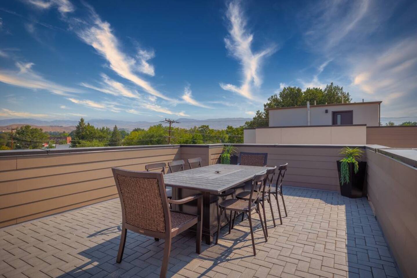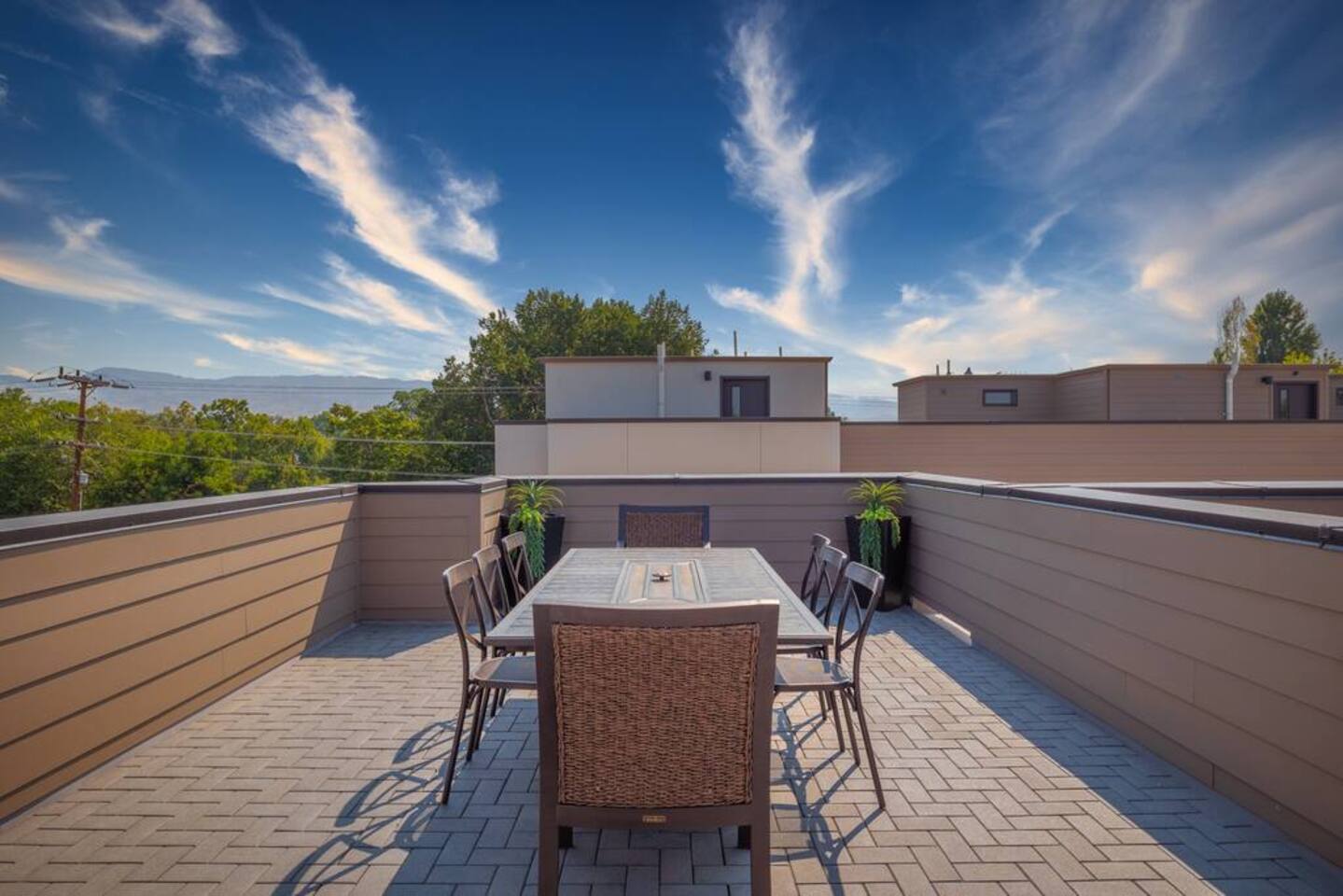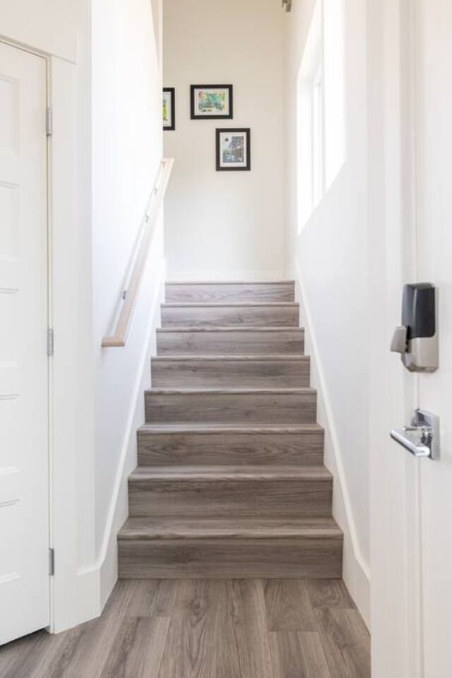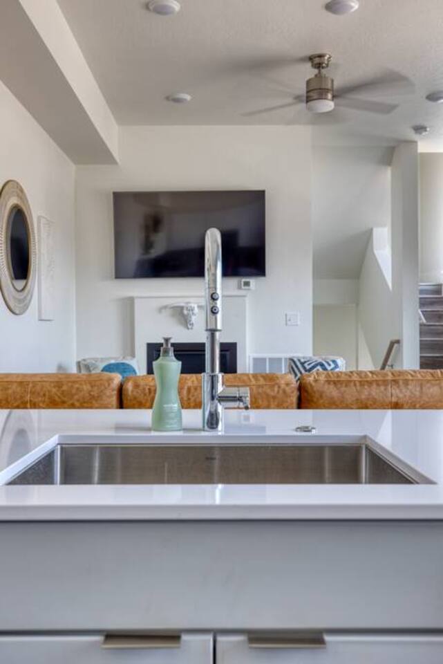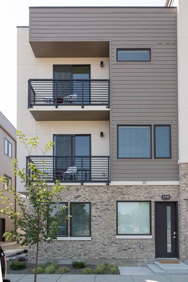You can expect a clean property with an ensuite junior master on the ground level with a coat closet and a private entrance. Just up the flight of stairs, you'll find a comfortable kitchen with all new appliances and housewares, a comfortable leather sofa, and a large Samsung smart TV. There's also a balcony patio on which you can relax. The third floor consists mainly of the master suite and laundry area. There's a full walk-in closet, a spacious bathroom, and a comfortable bed with another Samsung smart TV. The rooftop patio is on the 4th floor and has seating at the table around a gas fireplace. There's also a mini-fridge at the top of the stairs for your cold beverages. BEDROOMS: The home has two separate bedrooms. Bedroom 1 - Main level with a private entrance, closet, and ensuite. A comfortable Queen bed, and a large smart tv. Bedroom 2- On the third floor next to the laundry room, it has a large master bathroom, walk-in closet, smart TV, balcony, and lockable door. Bathrooms- There is a full bathroom on the main level and the third level. They are stocked with towels, washcloths, and hand towels. Each bathroom has hand soap, shampoo, conditioner, and body wash. As described above, this townhouse has 2 flights of stairs in the living areas and another flight of stairs leading to the rooftop patio. >Walking distance to restaurants, downtown Boise, and Whitewater Park. >Rooftop Patio & Gas Fireplace >2 Bedrooms ensuite >Fully stocked kitchen (cookware essentials, and cutlery) >Smart Tv's throughout >Fast WiFi >Next door to cafe/breakfast/microbrew/winebar (coming winter 2021) >Keyless Entry