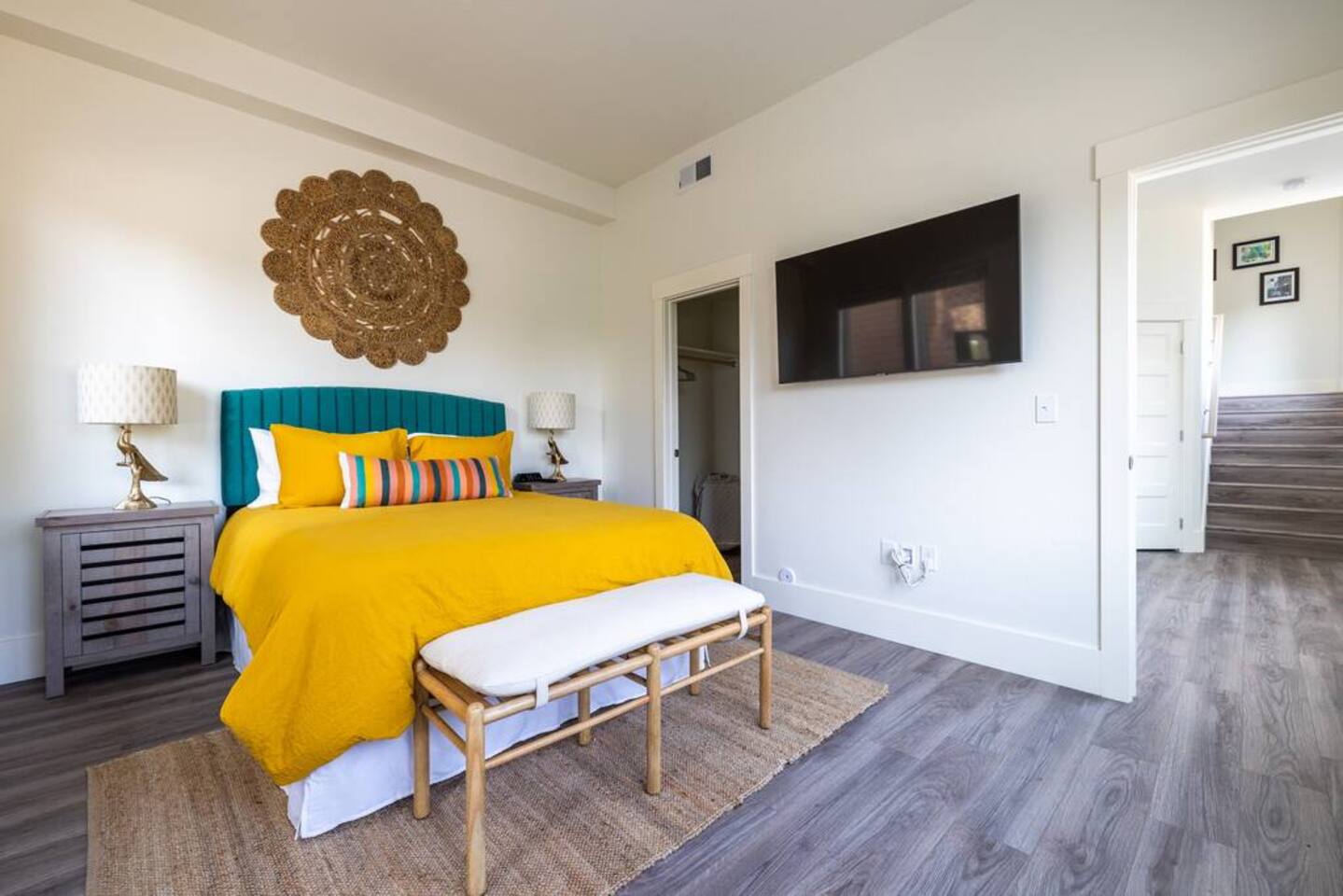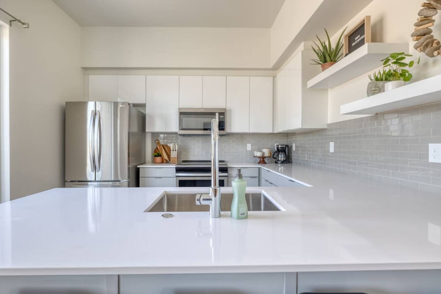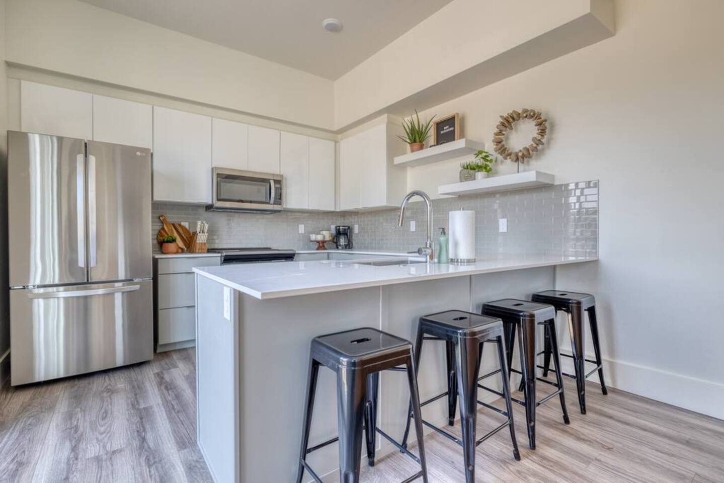You can expect a clean property with an ensuite junior master on the ground level with a coat closet and a private entrance. Just up the flight of stairs, you'll find a comfortable kitchen with all new appliances and housewares, a comfortable leather sofa, and a large Samsung smart TV. There's also a balcony patio on which you can relax. The third floor consists mainly of the master suite and laundry area. There's a full walk-in closet, a spacious bathroom, and a comfortable bed with another Samsung smart TV. The rooftop patio is on the 4th floor and has seating at the table around a gas fireplace. There's also a mini-fridge at the top of the stairs for your cold beverages. BEDROOMS: The home has two separate bedrooms. Bedroom 1 - Main level with a private entrance, closet, and ensuite. A comfortable Queen bed, and a large smart tv. Bedroom 2- On the third floor next to the laundry room, it has a large master bathroom, walk-in closet, smart TV, balcony, and lockable door. Bathrooms- There is a full bathroom on the main level and the third level. They are stocked with towels, washcloths, and hand towels. Each bathroom has hand soap, shampoo, conditioner, and body wash. As described above, this townhouse has 2 flights of stairs in the living areas and another flight of stairs leading to the rooftop patio. >Walking distance to restaurants, downtown Boise, and Whitewater Park. >Rooftop Patio & Gas Fireplace >2 Bedrooms ensuite >Fully stocked kitchen (cookware essentials, and cutlery) >Smart Tv's throughout >Fast WiFi >Next door to cafe/breakfast/microbrew/winebar (coming winter 2021) >Keyless Entry