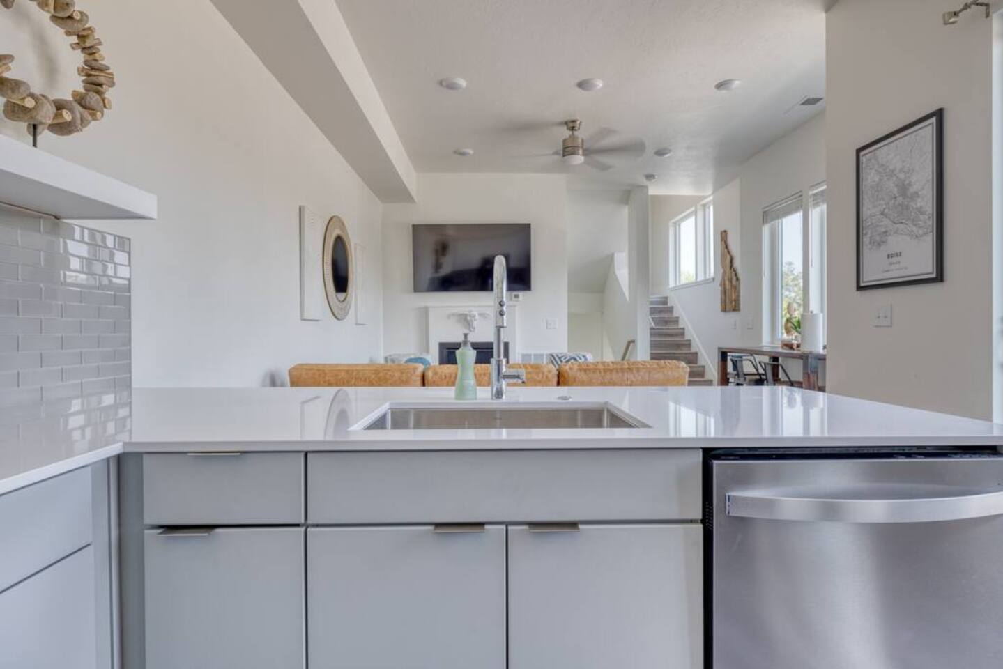 The townhome is located in Boise's West End near the popular Esther Simplot Park, Quinn's Pond, and the Boise Whitewater Park. There’s something for everyone; bike rentals, paddle board rentals, play structures, picnic tables and more. Homes in the area range from brand new, to mid-century, and near turn-of-the-century cottages. It's a part of Boise that is well established and yet, also up and coming. You can walk to downtown (1.5 miles one way), and is also quite easy on a scooter, bicycle or by car (lots of parking available downtown).