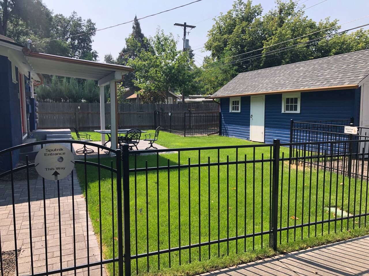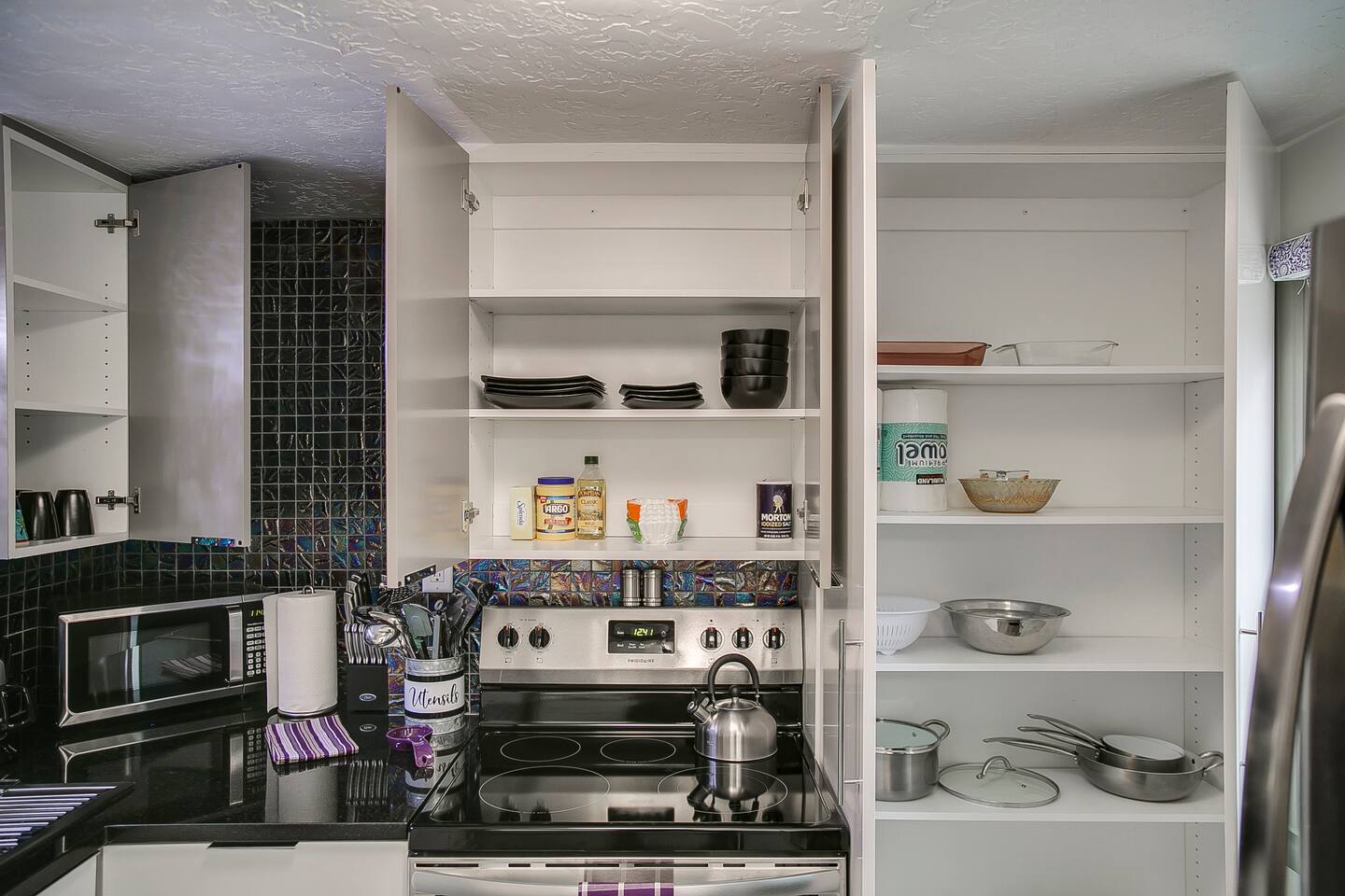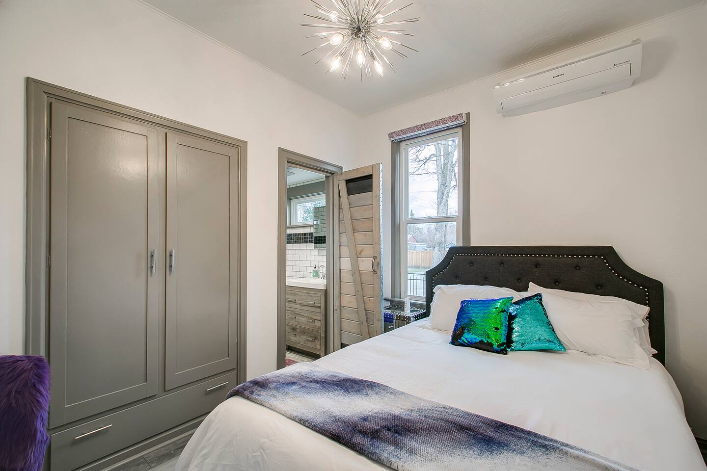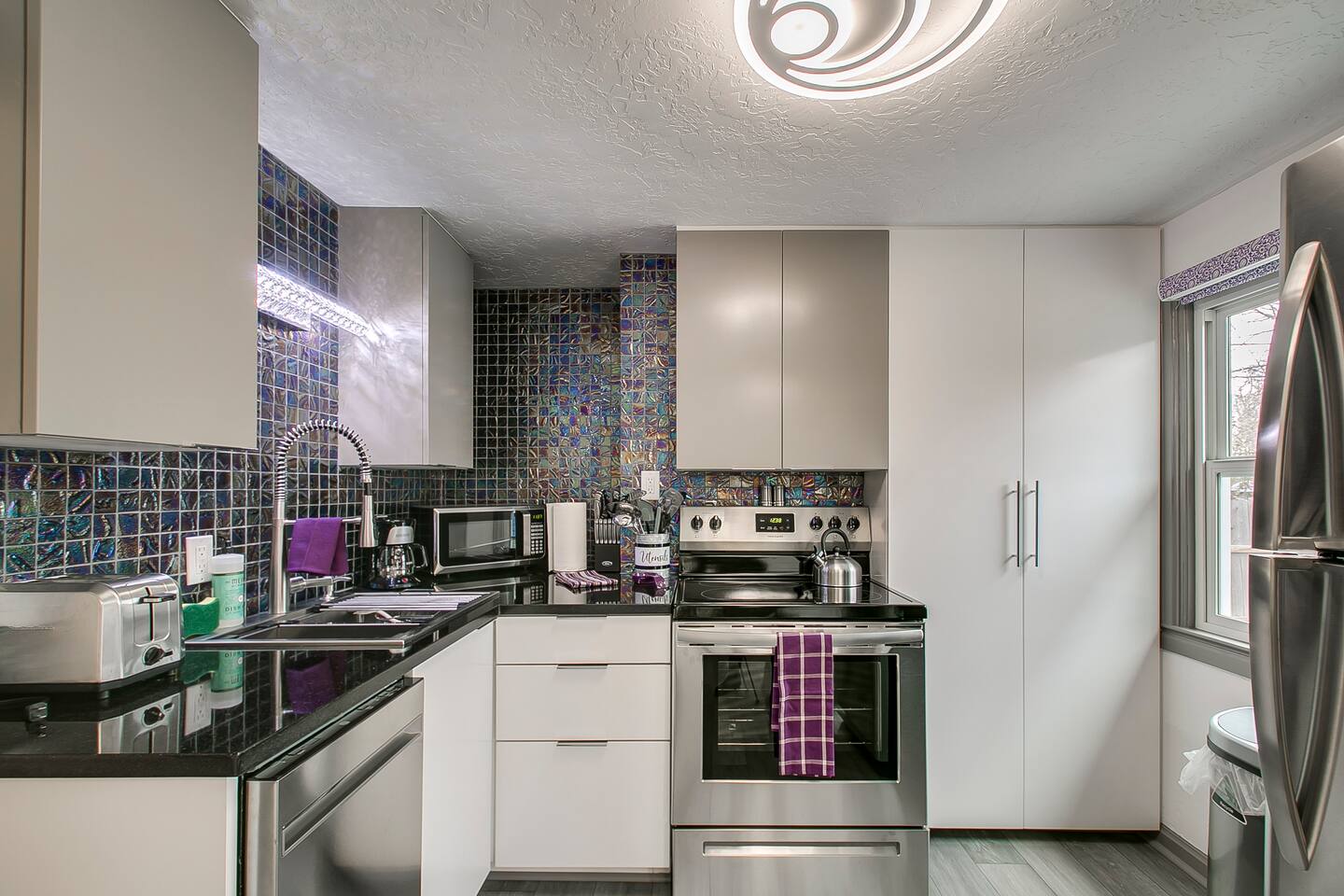 This is the downstairs back unit of a 107 year old triplex. The decor is intended to teleport our guests back to 1957 and the space race, where the Soviet Union and the United States competed to launch rockets into the atmosphere. The purple colorings make you feel like you're in the cosmos, and the mirrored furnishings and rivets harken back to days gone by where ANYTHING WAS POSSIBLE. Please also note that we have brand new AC/heating units that keep you comfortable no matter what the season. They can blow hot or cold as needed but you are in control of the temperature and each apartment has dedicated units so you are not sharing air with other guests. Approx. 650 square feet of living space.