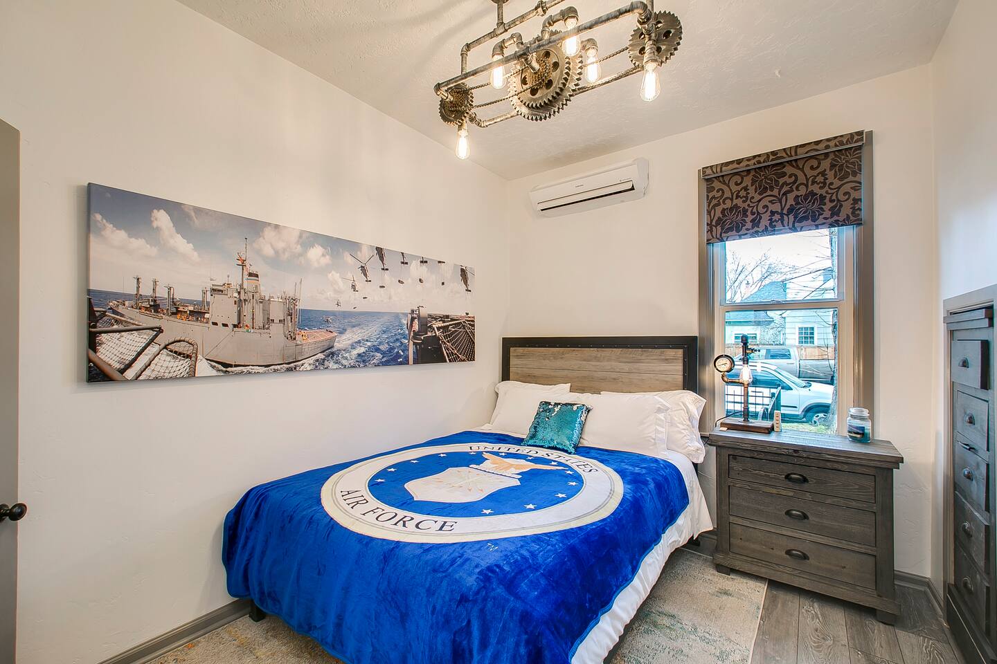 We launched this renovated 106 year old North End triplex to delight our guests. Steampunk captures memorabilia from the armed services and a bit of sci-fi to deliver an experience you won't forget. The Steampunk unit is the front apartment and shares a wall and a ceiling with the other neighbors, but no shared amenities or spaces. Outdoor amenities include cruiser bikes, a propane BBQ grill and patio furniture with umbrellas to keep the sun out. These are all encapsulated within a fenced yard area for your comfort. This unit has ~650 square feet of living space. Please note, there are a few steps up to the front door.