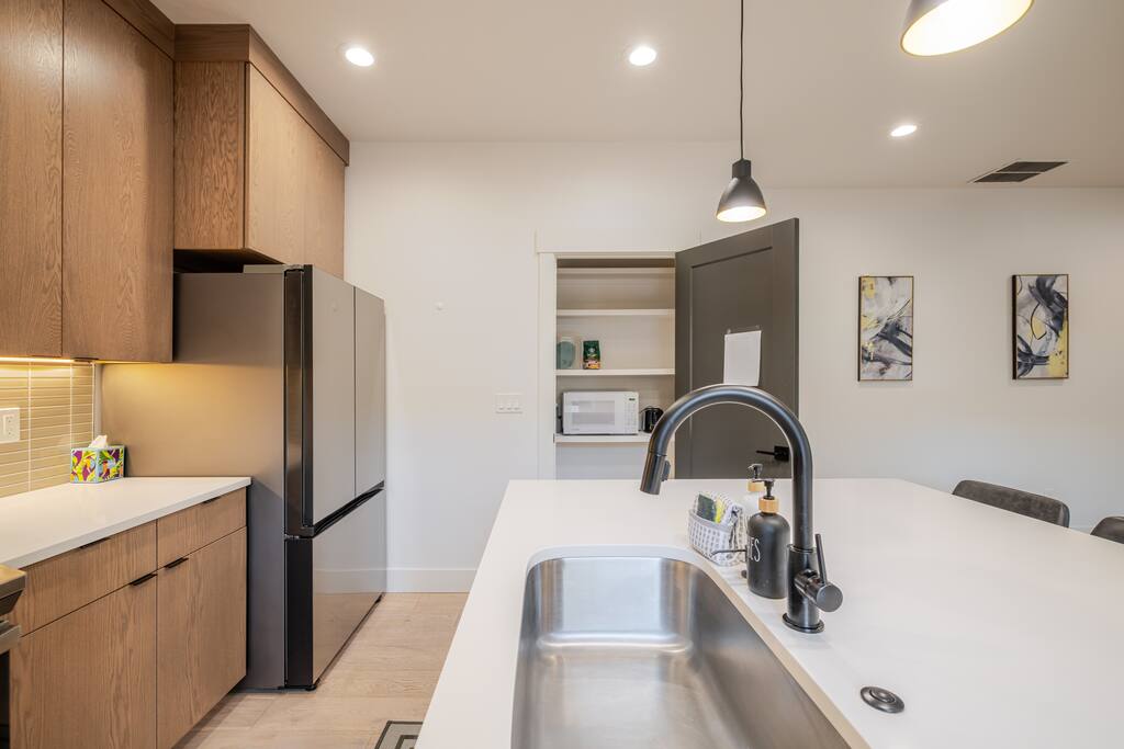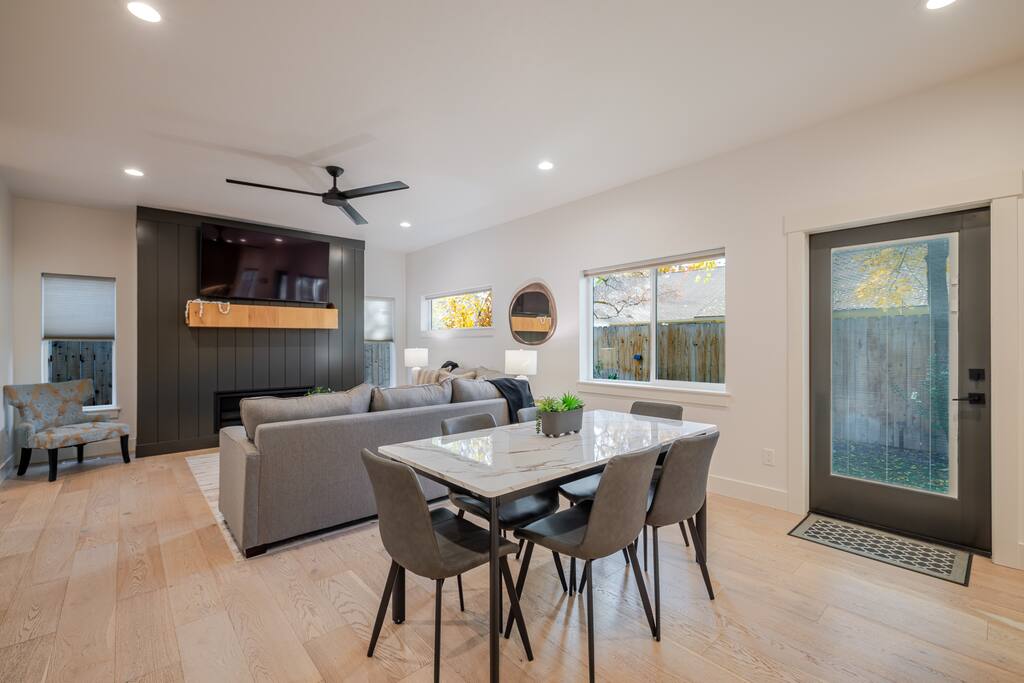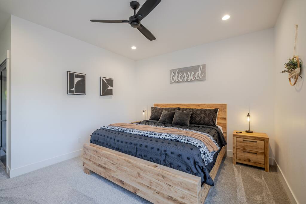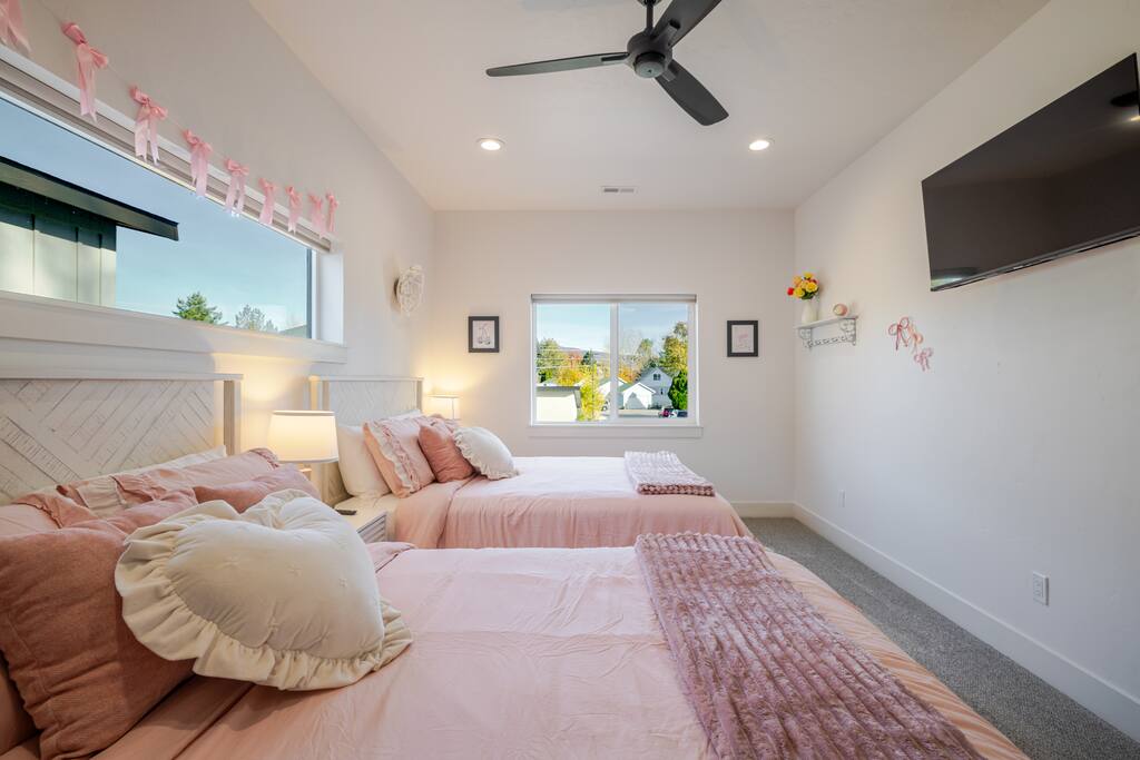 ----LOCATION Tucked in a quiet cul-de-sac in Southeast Boise, this modern home puts you close to everything: *5 minutes to Boise State University *7 minutes to the Boise River Greenbelt *10 minutes to downtown Boise *12 minutes to Micron Technology Campus *Quick access to I-84, coffee shops, dining, and local trails makes this the perfect home base for work or play. ----THE SPACE A stylish two-story home that combines modern design with the comforts of home. It’s ideal for families, business travelers, and small groups visiting BSU, Micron, or downtown. Sleeps up to eight guests, with dedicated workspace, bright natural light, and strong Wi-Fi throughout. ----MAIN LEVEL Living Room: Open-concept layout with sectional sofa, smart TV, and gas fireplace. Dining Area: Seats six and connects directly to the kitchen and patio. Kitchen: Fully stocked with stainless appliances, quartz countertops, cookware, and coffee setup. Island seating for two. Powder Room: Convenient half bath off the main hallway. Mudroom & Garage Access: Cubbies for coats and gear; attached two-car garage available for guests. Workspace: Dedicated office with desk, chair, and reliable Wi-Fi — perfect for remote work. ----UPSTAIRS Primary Suite: King bed, ceiling fan, ensuite bath with double vanity, walk-in shower, and freestanding soaking tub. Second Bedroom: King bed, smart TV, large closet. Third Bedroom: Two full beds — great for kids or friends. Loft: Secondary living area with full sleeper sofa and smart TV. Laundry Room: Full-size washer and dryer behind sliding barn doors. Bathrooms: Two full baths upstairs, stocked with towels, shampoo, conditioner, and body wash. OUTDOOR SPACE Private, fully fenced backyard that’s quiet and secure. No BBQ grill, but there’s plenty of space for morning coffee or evening relaxation. GUEST ACCESS & AMENITIES Guests have full access to the home, garage, and fenced yard. Smart lock for self-check-in. High-speed Wi-Fi, central A/C and heating, washer/dryer, and multiple smart TVs. Dedicated workspace suitable for remote work.