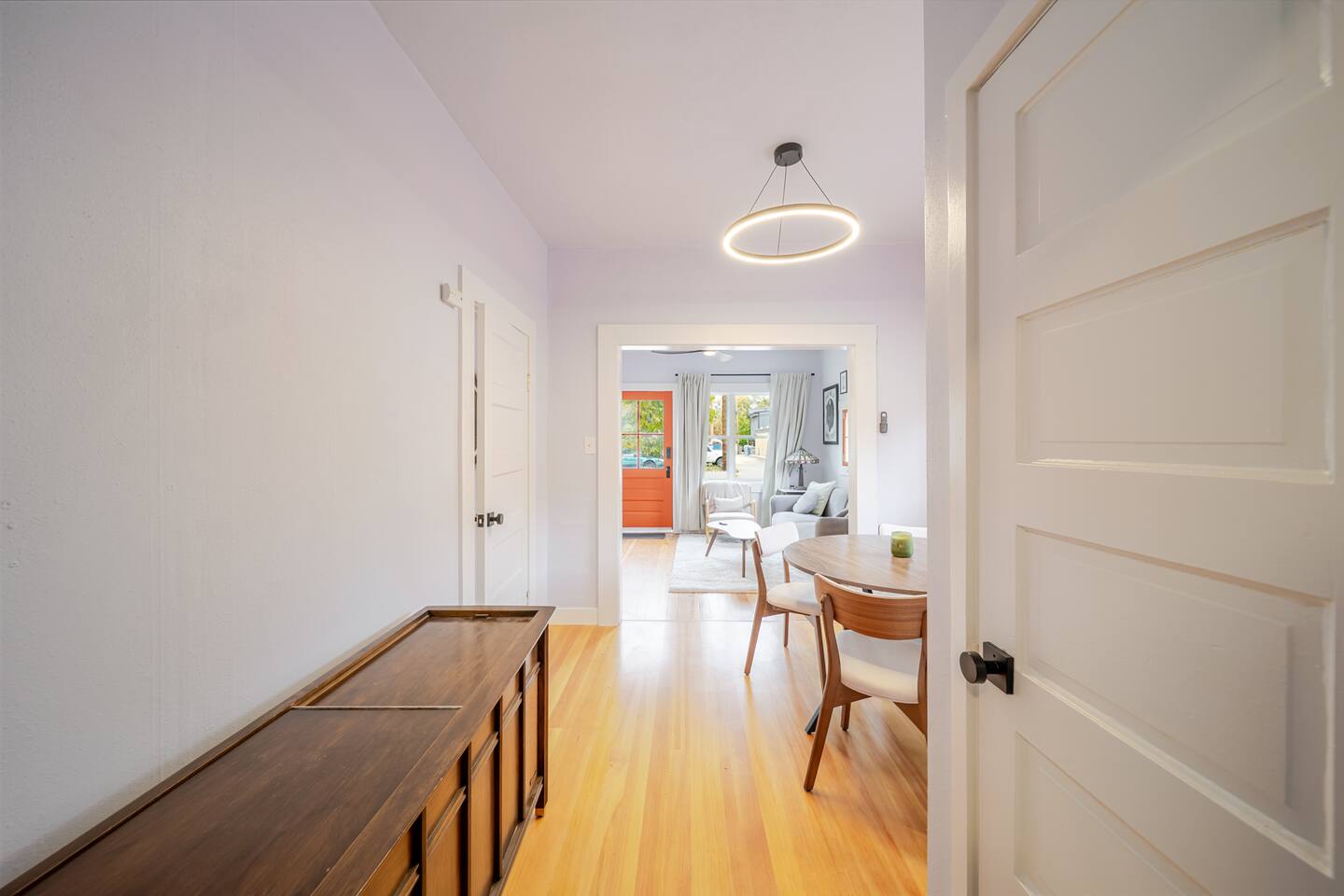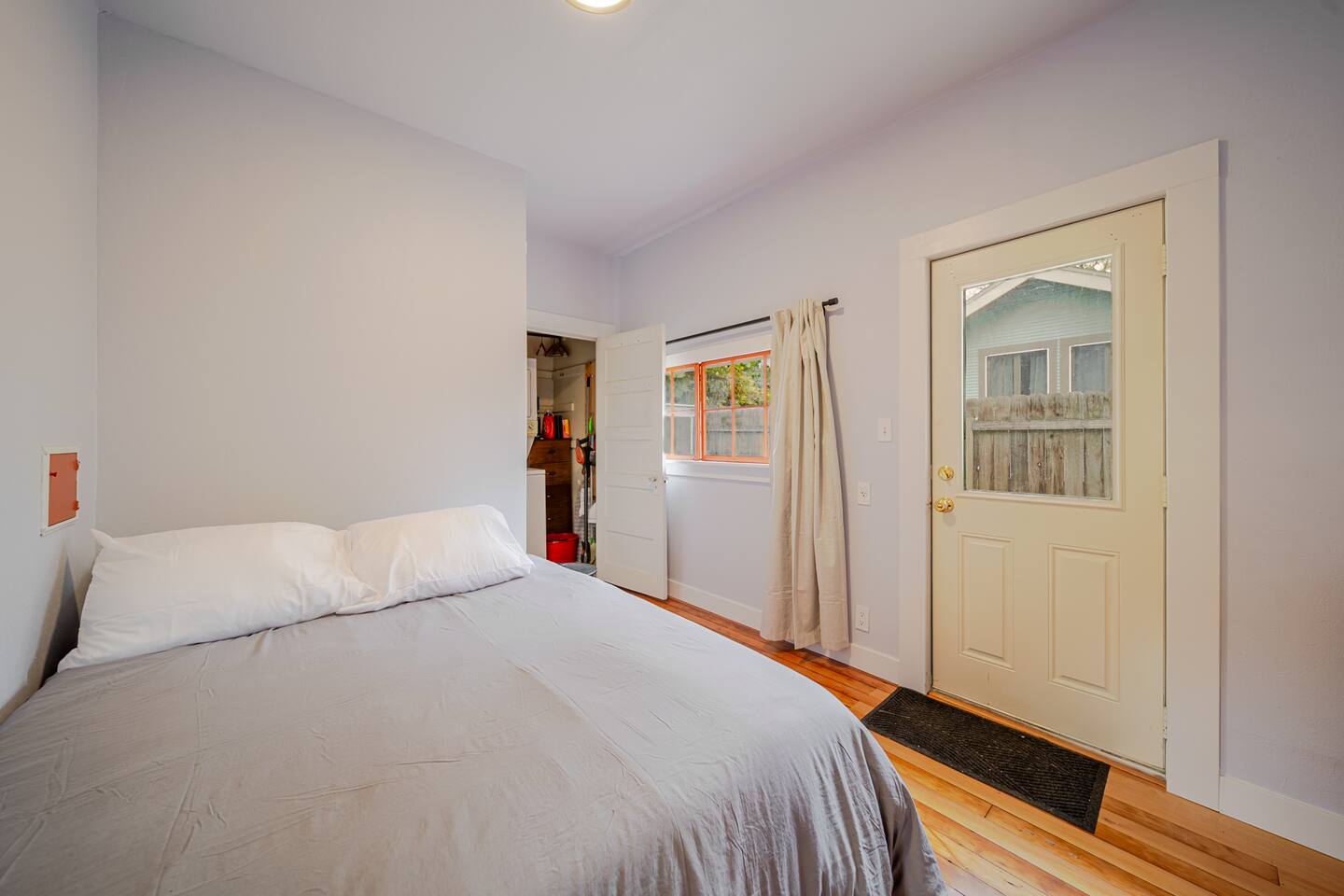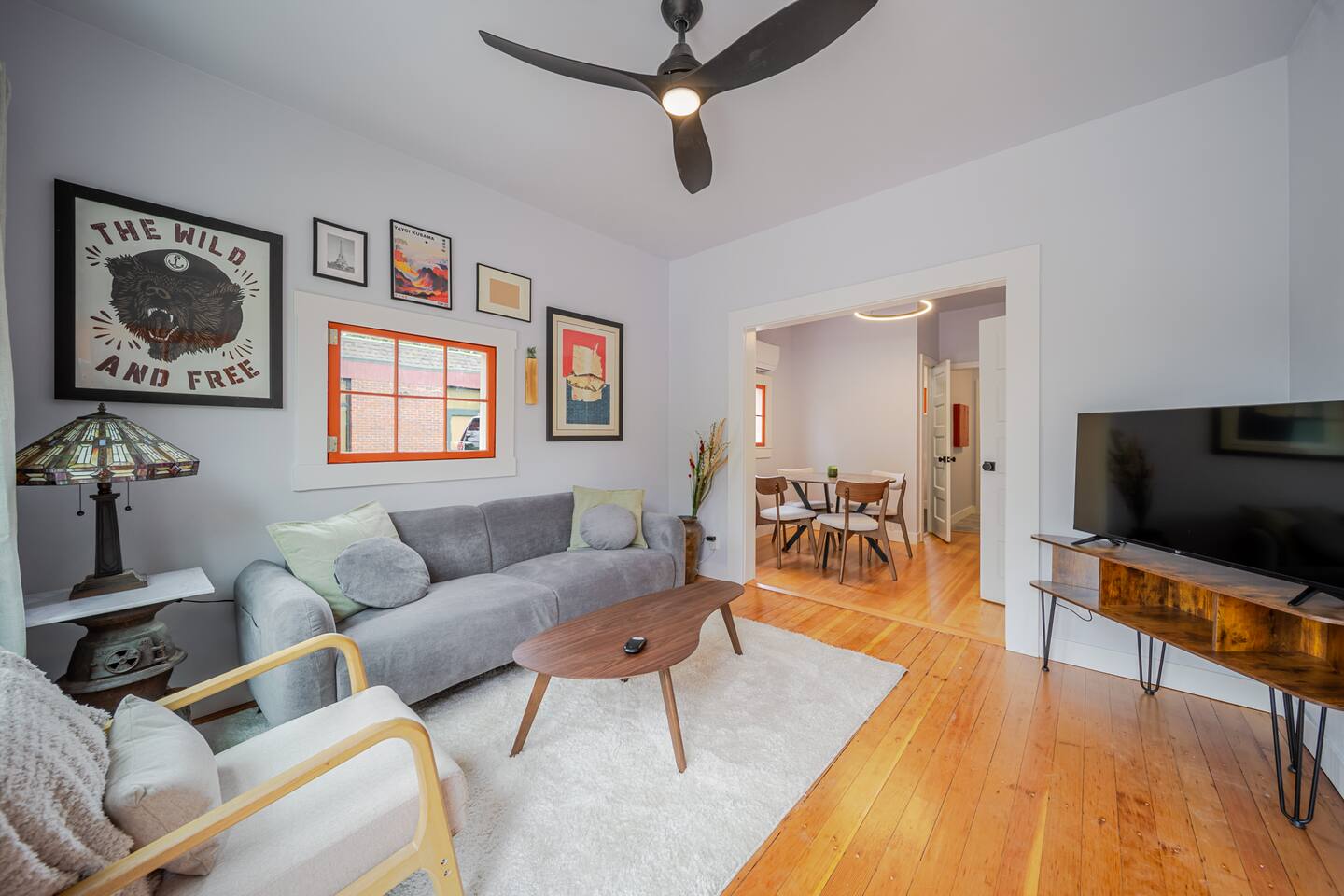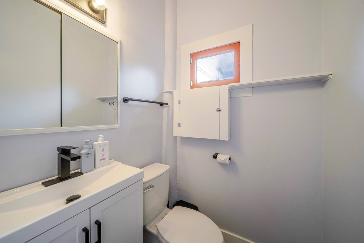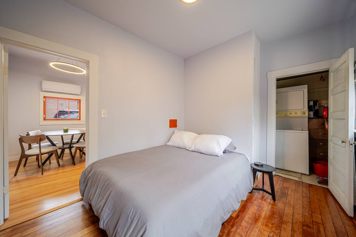 Property Description Welcome to this cheerful North End cottage—bright, comfortable, and thoughtfully arranged for a simple, relaxing Boise stay. The home blends vintage charm with modern convenience, offering all the essentials in a walkable, tree-lined neighborhood close to Hyde Park and downtown. Exterior: Private off-street parking for one vehicle is available beside the home. Additional vehicles can use street parking nearby. Living Area: The main living space is cozy and full of natural light, featuring a comfortable couch, accent chair, and smart TV for streaming your favorite shows after a day of exploring Boise. -Dining Area: A dedicated dining nook seats four comfortably—perfect for meals, games, or getting some work done. -Kitchen: A fully stocked galley kitchen with generous counter space, cookware, utensils, and small appliances. Ideal for preparing everything from morning coffee (drip coffee maker) to full meals. -Bedroom 1: Includes a full-size bed behind a rustic barn-style sliding door, with a custom-built garment rack and shelf for storage. -Bedroom 2: Offers a queen bed, dresser, and garment rack, along with access to an in-unit stackable washer and dryer for convenience during longer stays. -Bathroom: Features a narrow but functional layout with a tub/shower combo, vanity, and toilet. Compact yet efficient, providing everything you need for a comfortable stay.
