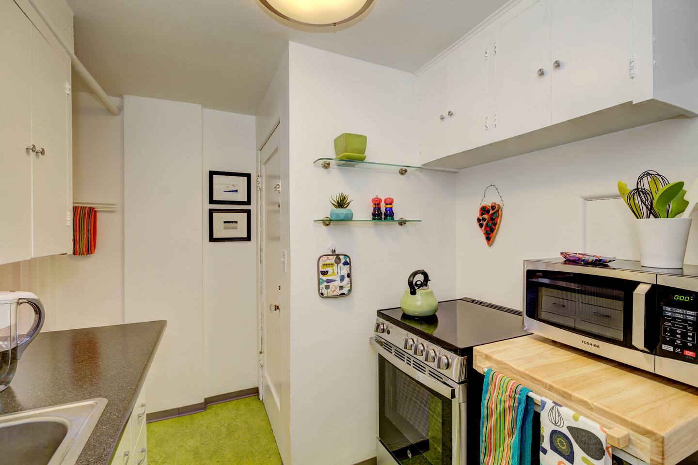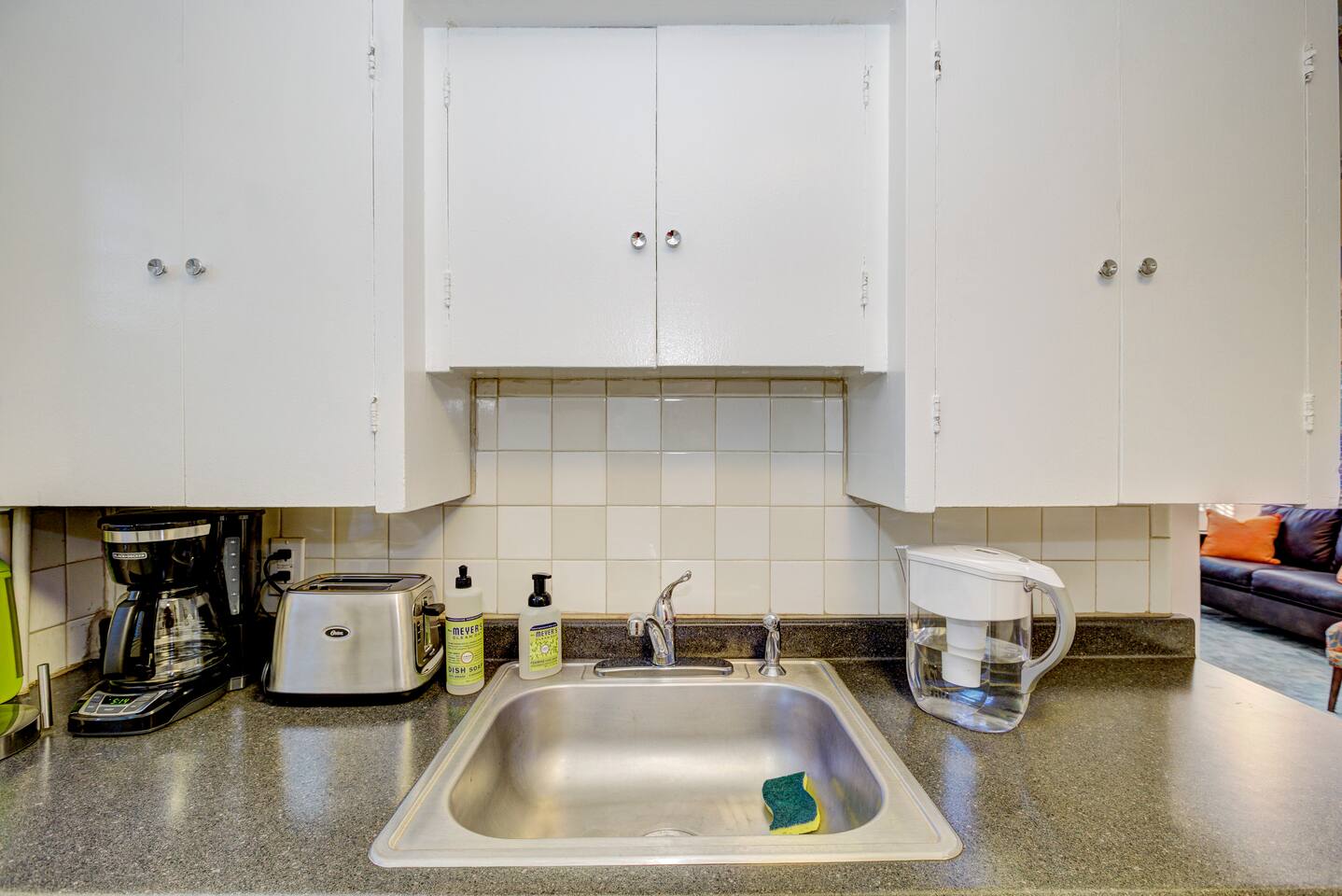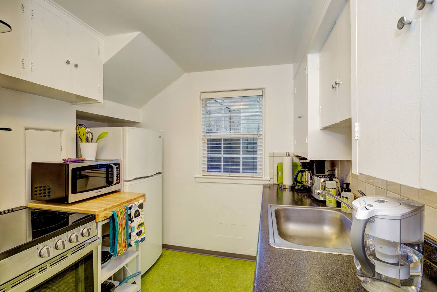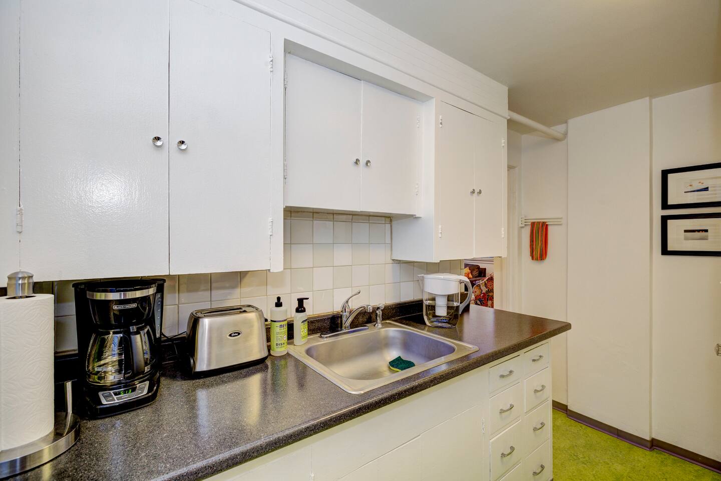 This daylight basement is filled with natural light! We offer our guests complimentary regular and decaf coffee, creamer and sugar. For snacking, we offer our guests complimentary breakfast bars for your first morning. Washer and dryer is available to all guests in common area in building.