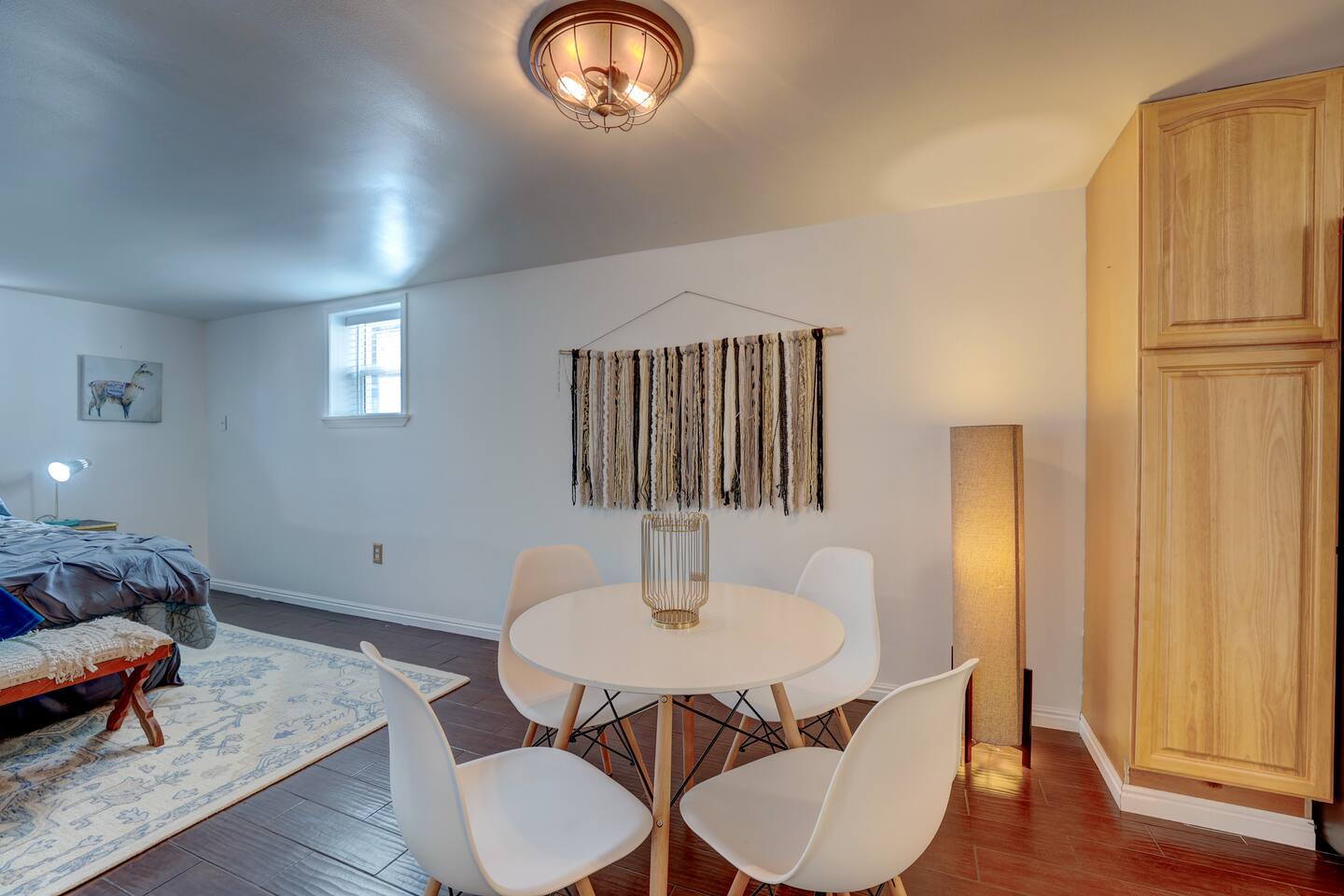 The property is wonderfully located just on the edge of downtown. The living spaces are large and roomy so you won't feel cramped. The main living area is spacious, light and has plenty of space to spread out. The bedroom too is spacious. Down the hallway you'll find the bathroom with amazing fixtures and finishes. The kitchen will provide all the counter space you need to cook like a creative. We offer complimentary coffee to all our guests! All of the spaces are clean and in great shape!